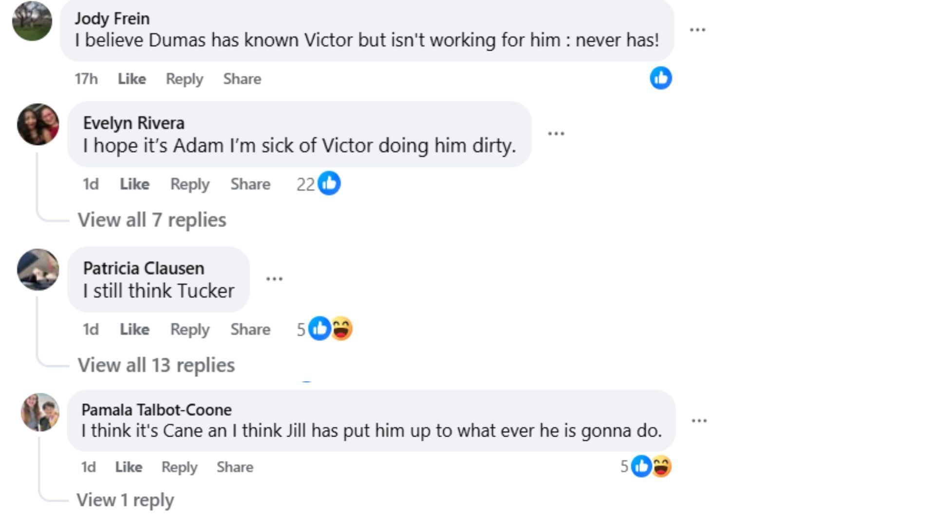 The latter made a prediction that Dumas could be someone working for the notorious Victor Newman. Dennis wrote,