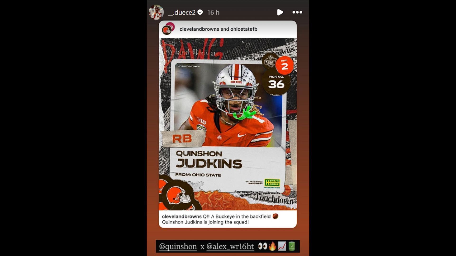 Knight celebrated the news on Instagram as Judkins joins Elba high school alum, Alex Wright, at Cleveland. The Auburn star tagged both Wright and Judkins in his IG story as the two gear up to be new teammates for the Browns.