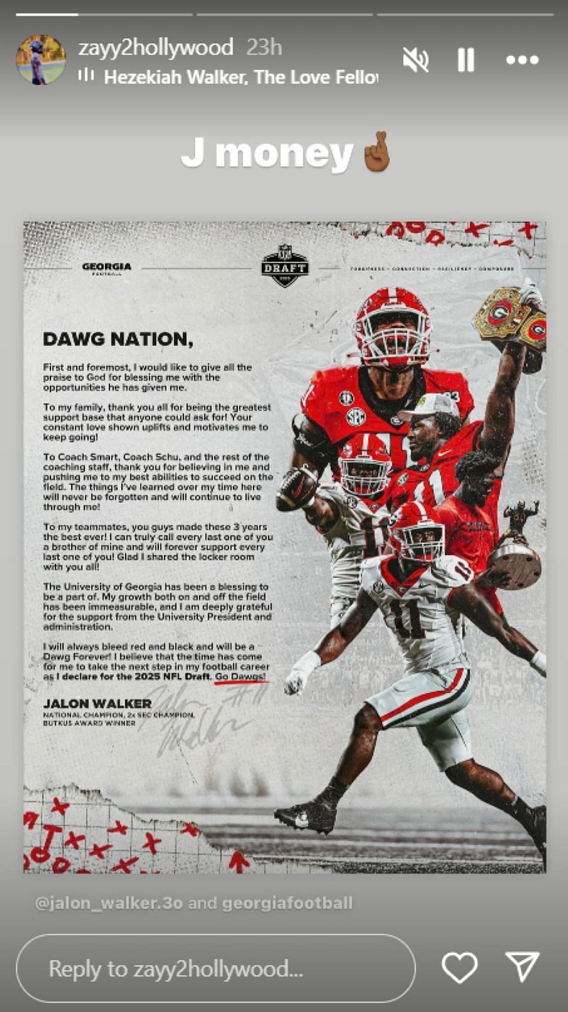 Walker is now part of the Georgia family and he wasted no time in appreciating his fellow Bulldog, the former five-star edge rusher Mykel Williams, after he declared for the NFL Draft. Walker had a small but crisp reaction to Williams' declaration.
