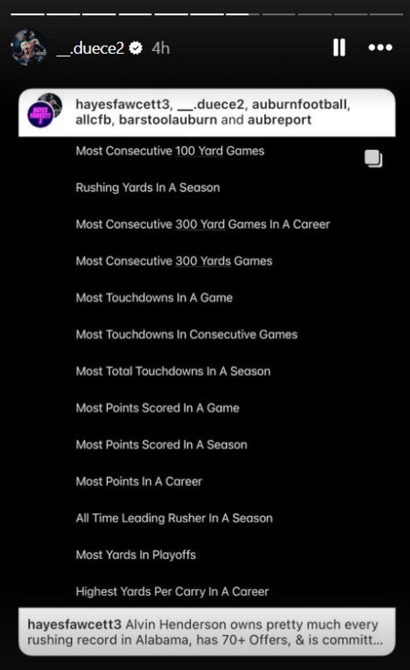 Henderson took to Instagram and shared multiple photos of his record-breaking night. The Auburn commit received a lot of love from various sports outlets for his incredible achievement. He shared most of those posts on his Instagram stories.