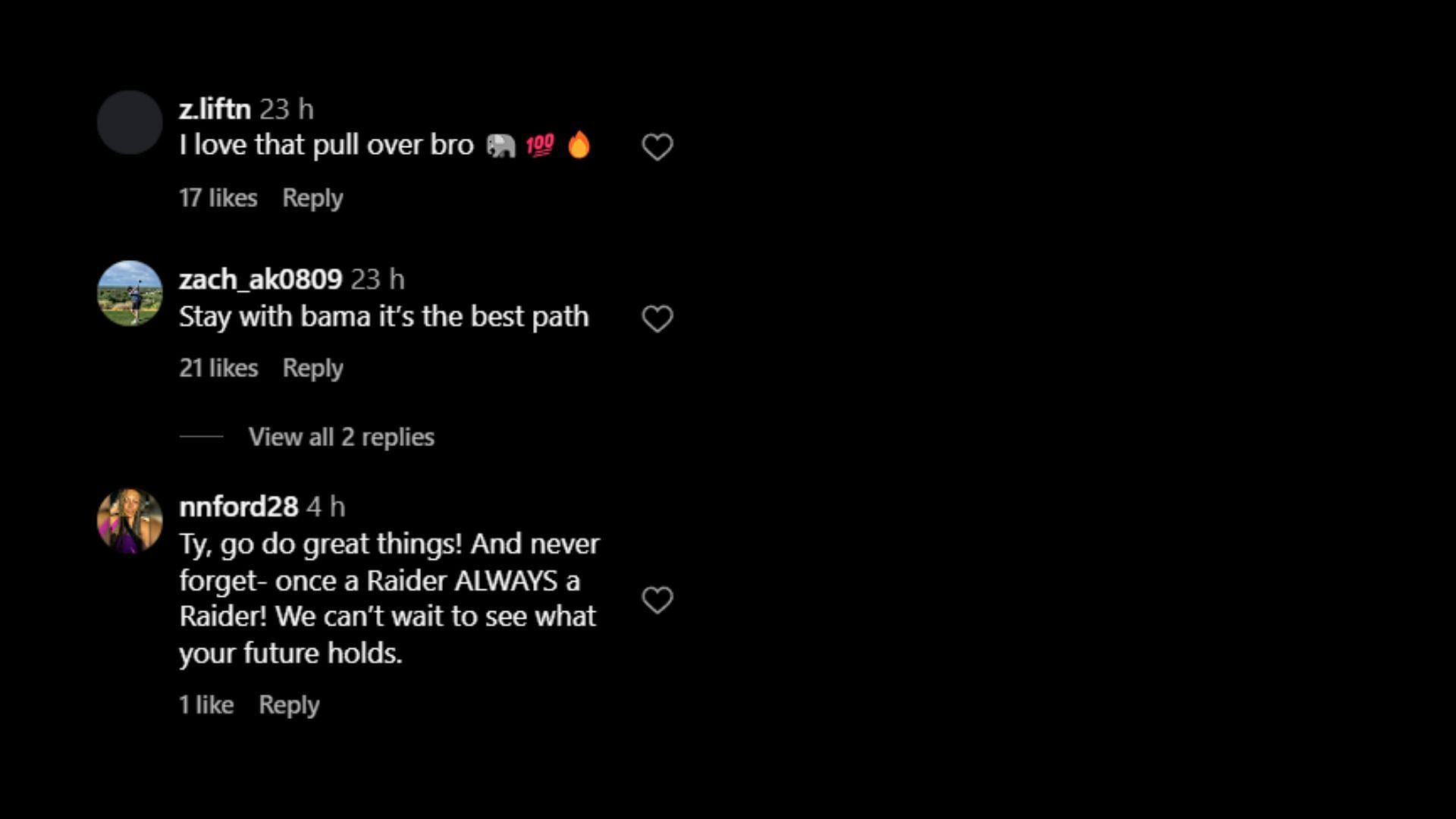 “Ty, go do great things! And never forget—once a Raider, ALWAYS a Raider! We can’t wait to see what your future holds,” another wrote.