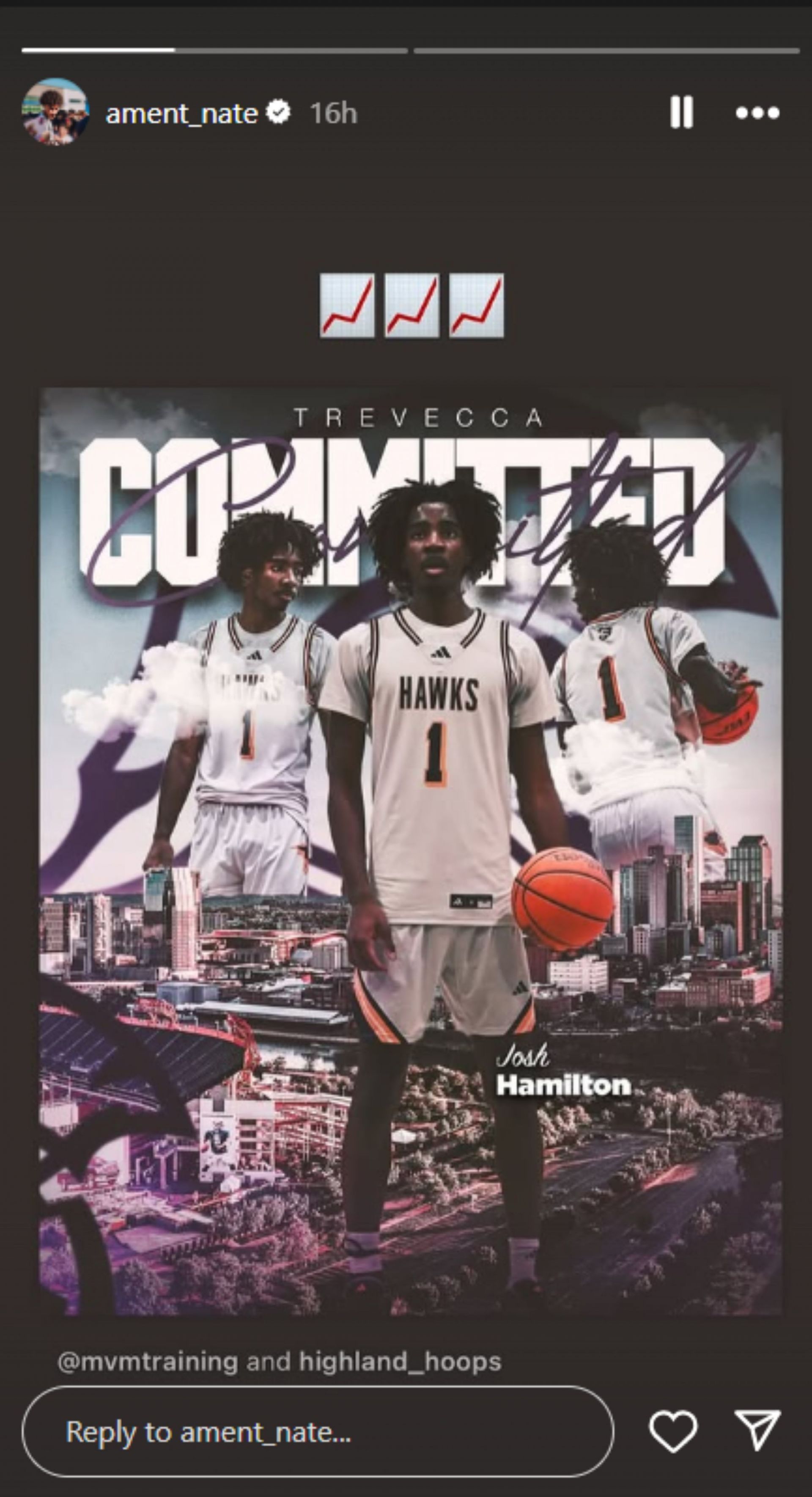 Hamilton shared the news of his commitment to Trevecca University on Tuesday. Ament reshared the post and captioned the story with three graph emojis.
