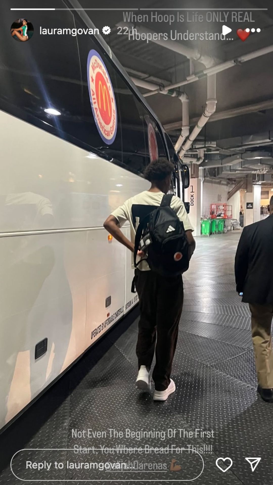 Laura Govan, the ex-partner of former NBA star Gilbert Arenas, shared a message for their son, Alijah Arenas, on Thursday on Instagram, posting a picture of Alijah walking beside a McDonald’s All-American Game bus. She added proud and sentimental words with the picture as Alijah is set to begin a new phase in his basketball journey.