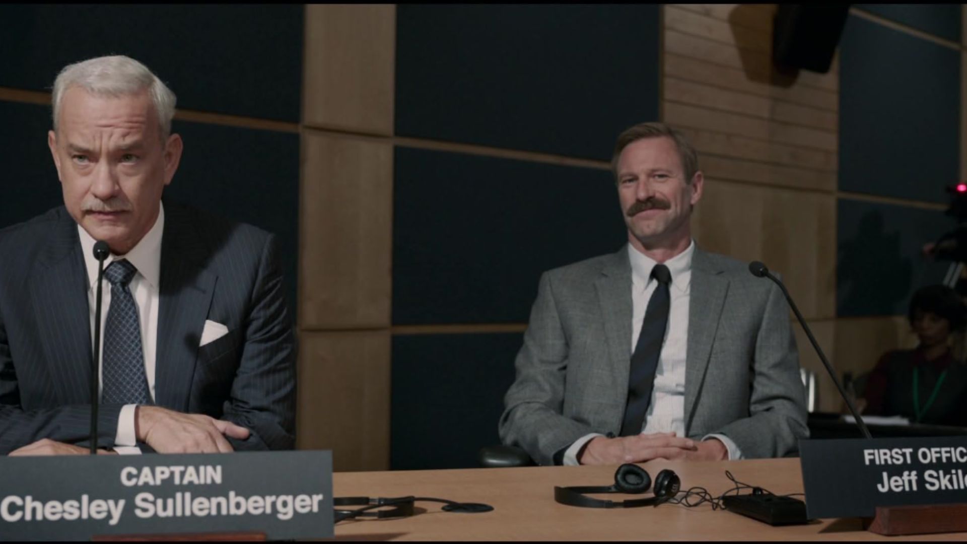 In the film's climactic moments, the captain and his co-pilot, Jeff Skiles, explain their conduct in a public hearing.