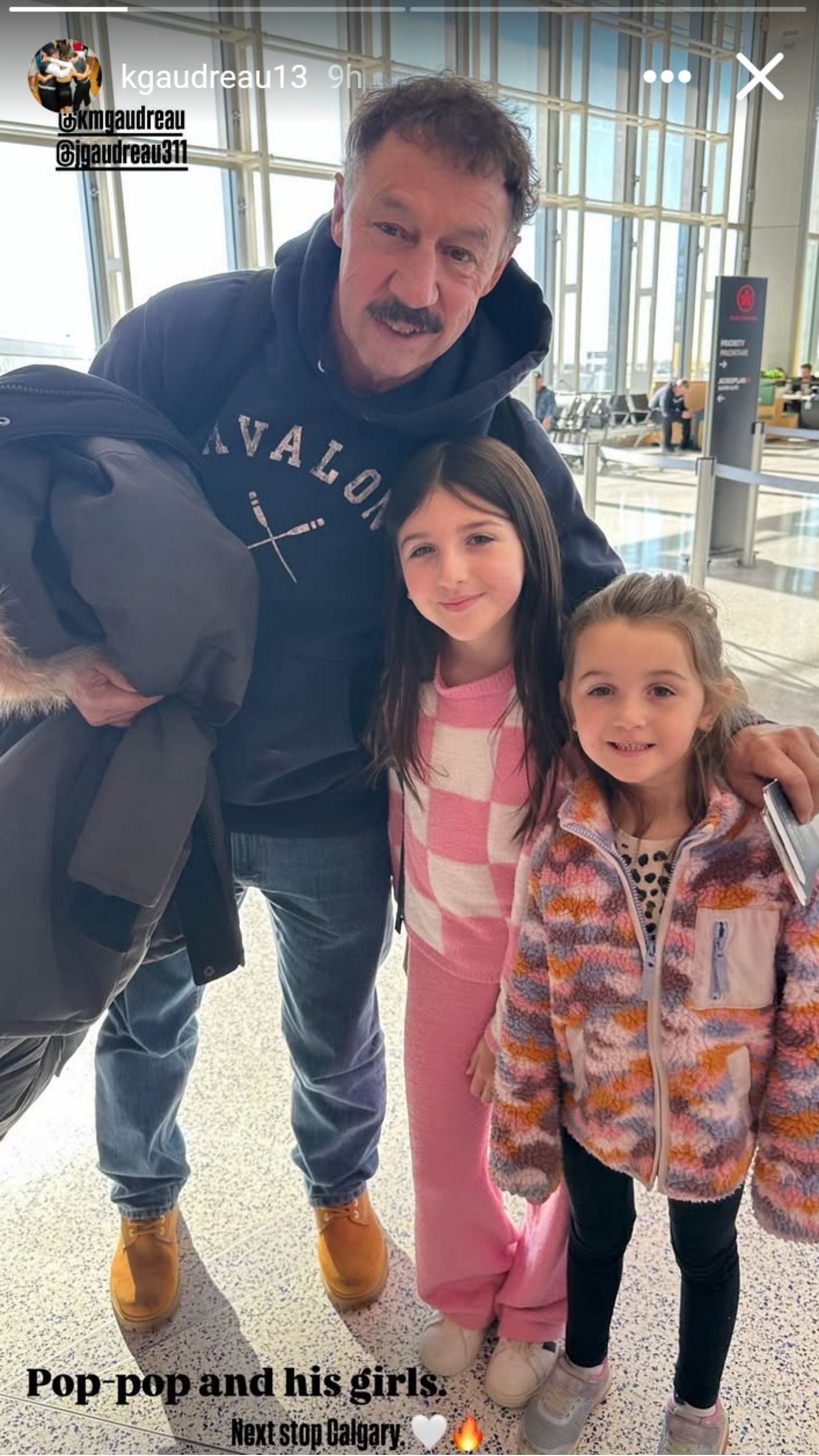 She shared another photo of her dad, Guy Gaudreau, posing with his daughter Kristen’s children in the airport.