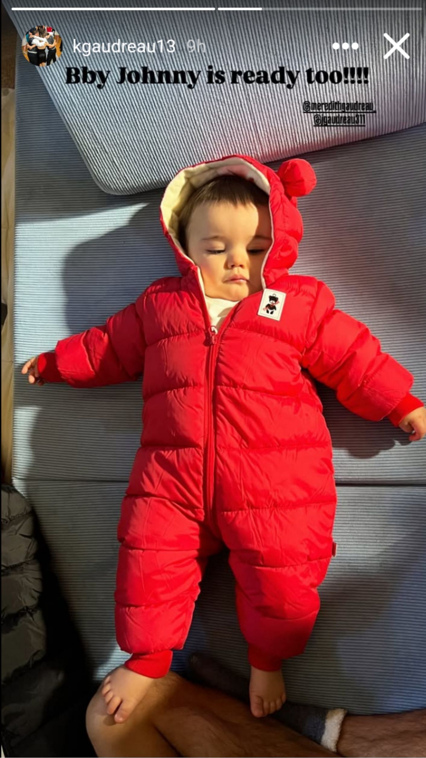 Johnny Gaudreau’s sister Katie posted a few pictures on her own Instagram stories as well. She shared a snap of her young nephew in a red jacket.