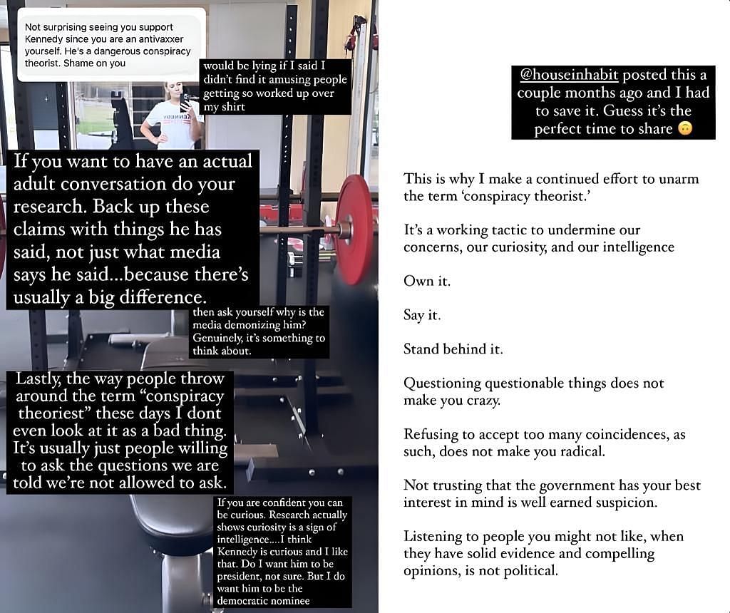 She was outspoken in her support for Robert F. Kennedy Jr. and her choice of sporting the t-shirt, slamming the anonymous user and advising him to do some research.