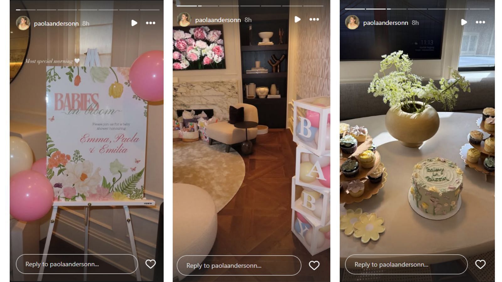 Paola also shared a glimpse of the dessert table, where a golden vase with a floral centerpiece was surrounded by pastel-colored cupcakes on tiered stands. The round cake was decorated with delicate flowers and the words “Baby in Bloom” were also visible. In her final story, she reposted Fitzgerald’s story of a group picture featuring the three moms-to-be.