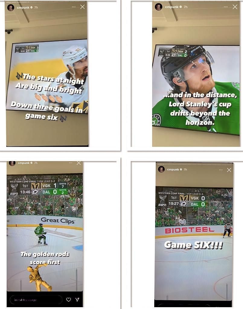 He also posted a photo of Jake Oettinger and the sad Dallas Stars fans with the caption "Pain" after the team's loss. Punk also posted about the Vegas Golden Knights not touching the Western Conference trophy in his final posts about the game.