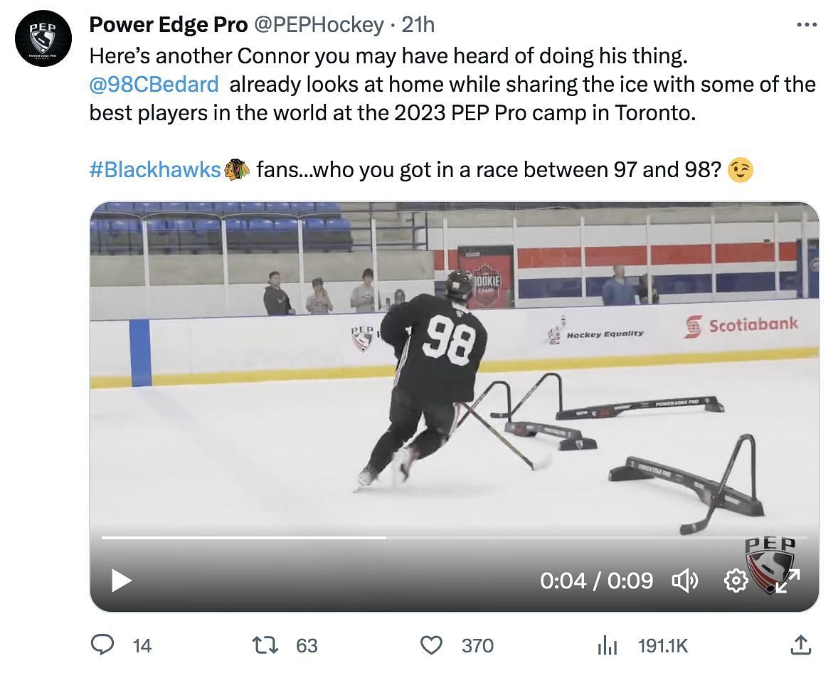 "Here’s another Connor you may have heard of doing his thing. @98CBedard already looks at home while sharing the ice with some of the best players in the world at the 2023 PEP Pro camp in Toronto."