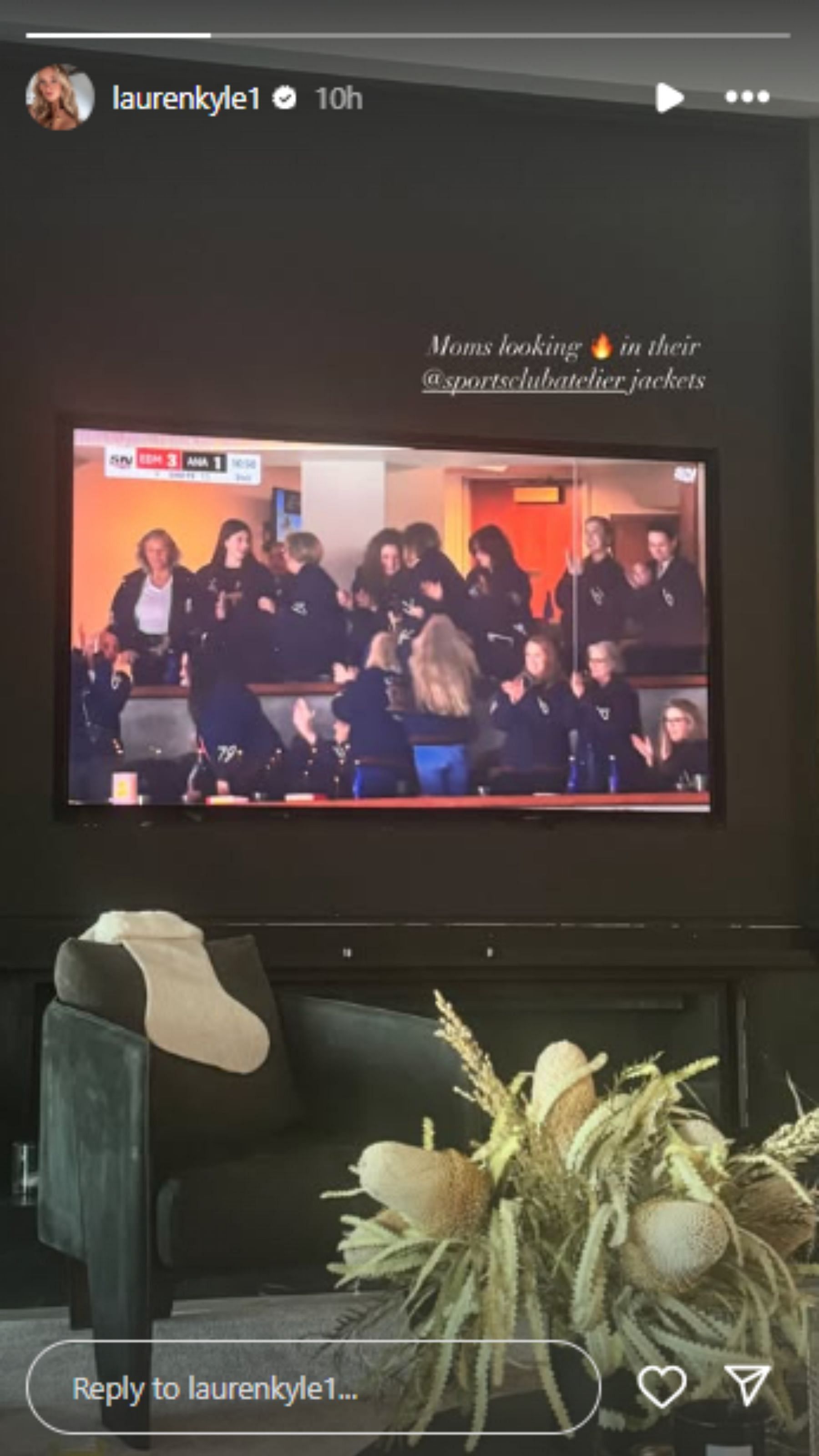 Edmonton Oilers captain Connor McDavid’s wife, Lauren Kyle, is an interior designer by profession, and earlier this month, she launched her signature sports apparel brand, Sports Club Atelier. On Sunday, she shared her excitement about Oilers players' mothers wearing her $450 varsity jackets (according to icedistrictauthentics.com) during the Edmonton Oilers vs. Anaheim Ducks game.