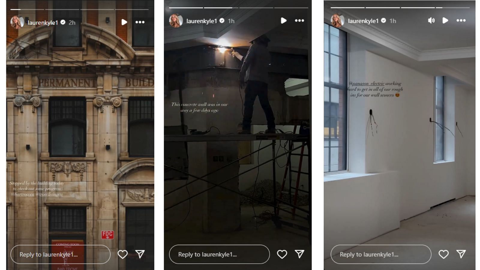 On Thursday, Kyle shared updates on her Instagram stories, showing the progress of construction including wall demolition and electrical preparations in the Canada Permanent Building.