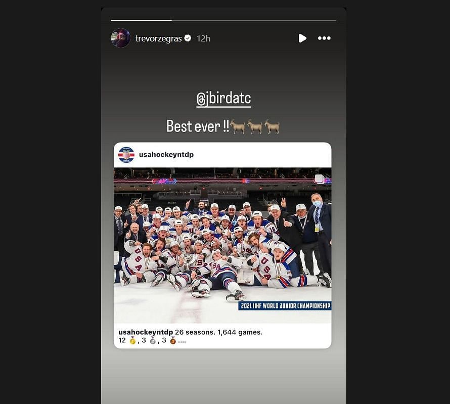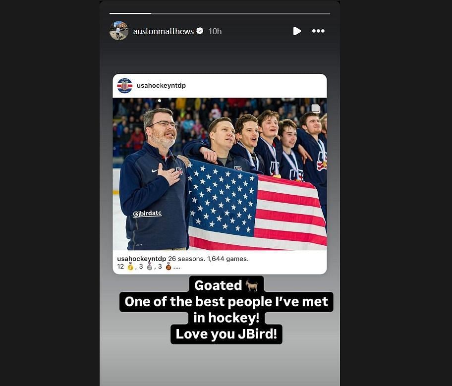 Auston Matthews and Trevor Zegras honored Jason Hodges, who finished his career with USA Hockey's National Team Development Program. Matthews, the captain of the Toronto Maple Leafs, shared a touching post from the NTDP on his Instagram story.