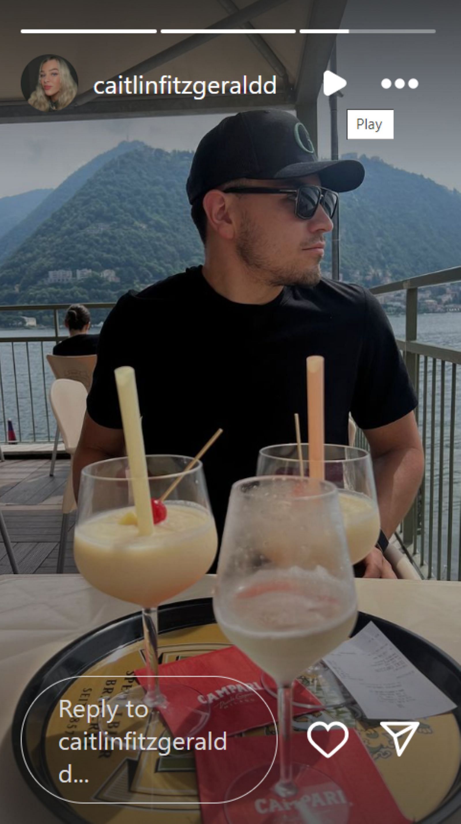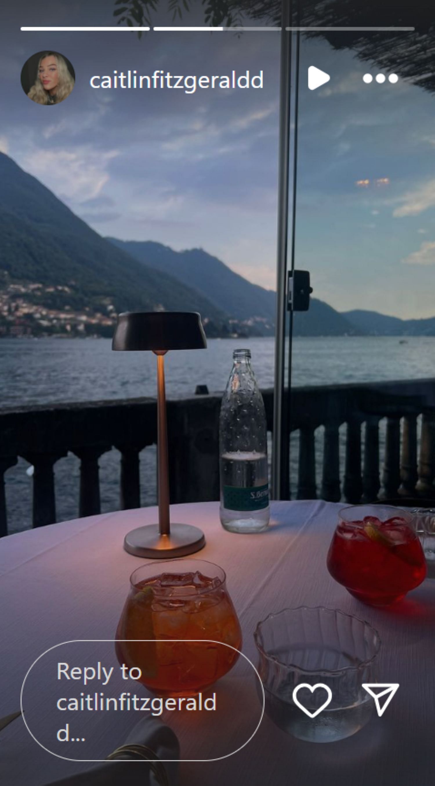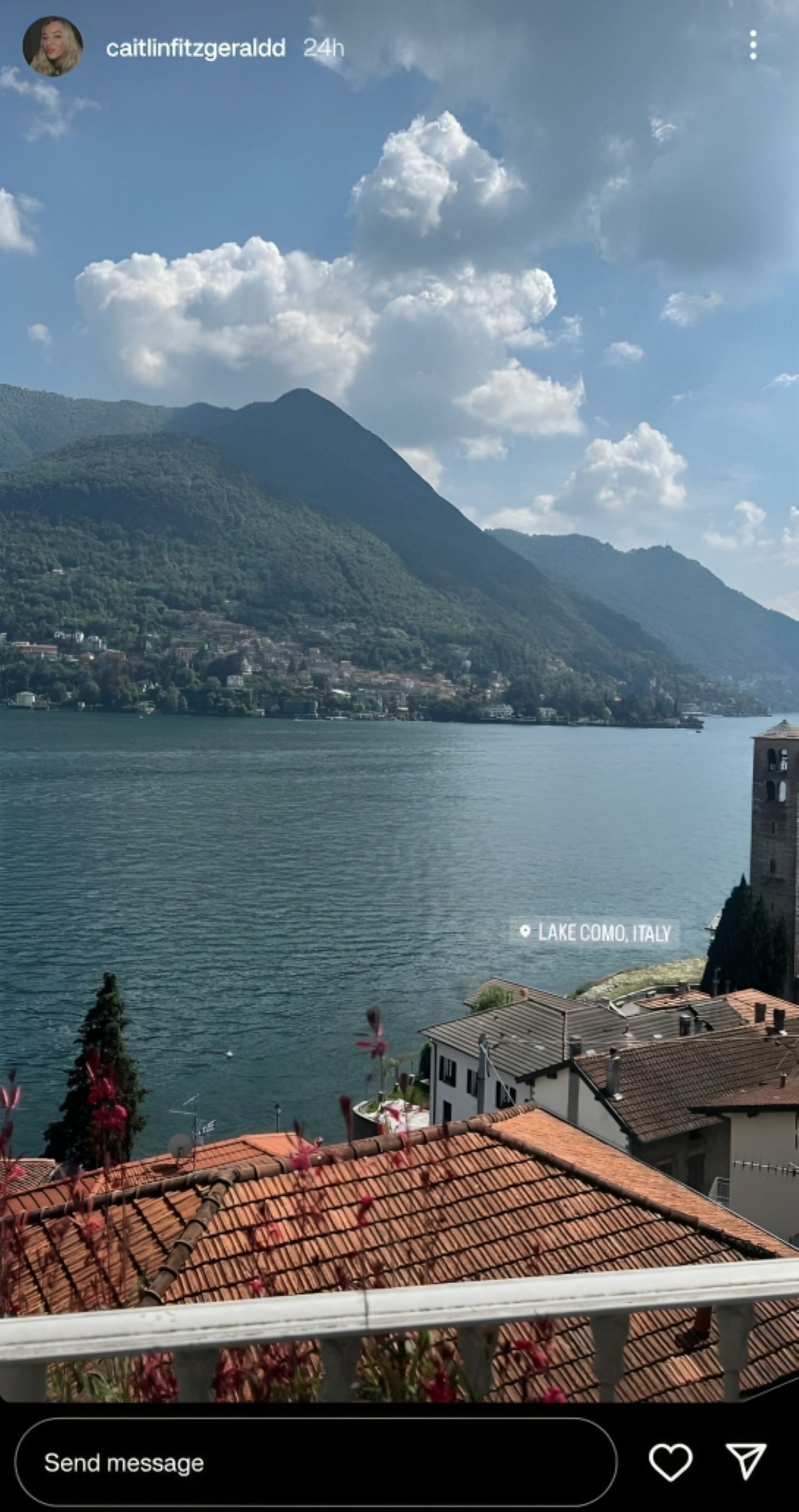 Fitzgerald posted three photos of their evening together on Instagram. The first photo shows a breathtaking view of Lake Como from their hotel.