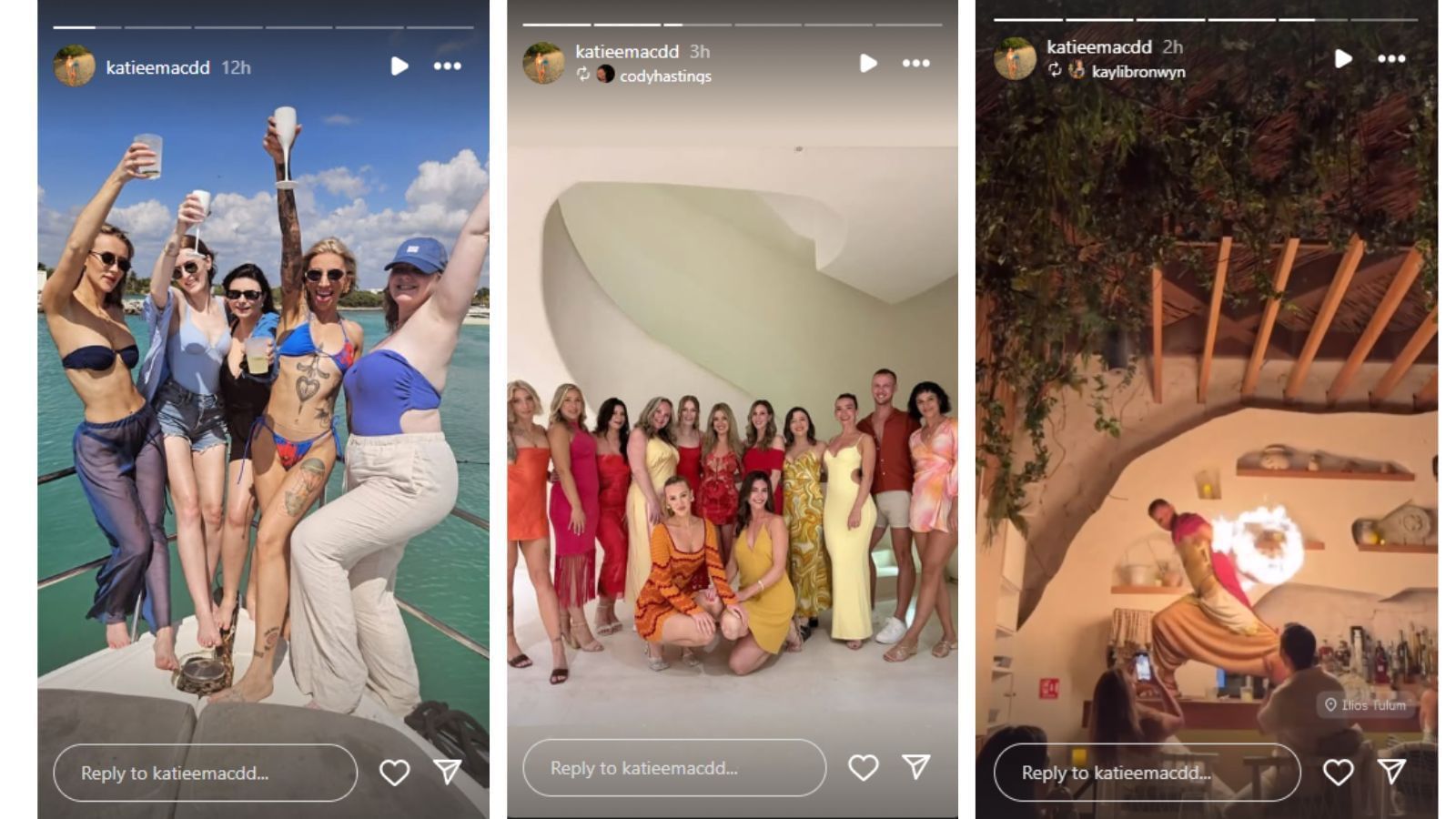 Katie posted a few more photos on her stories. One of the clicks showed the girl group on the boat dressed in swimsuits and summer clothes, raising their glasses for a toast.