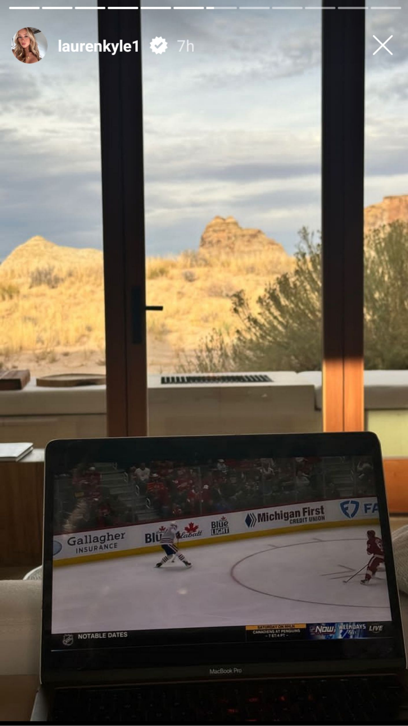While she is off vacying at Amagiri with her mother, Lauren Kyle did not miss the Edmonton Oilers’ Sunday clash against the Detroit Red Wings. She tuned in to Connor McDavid’s matchup on a laptop and posted a snap on her Instagram.
