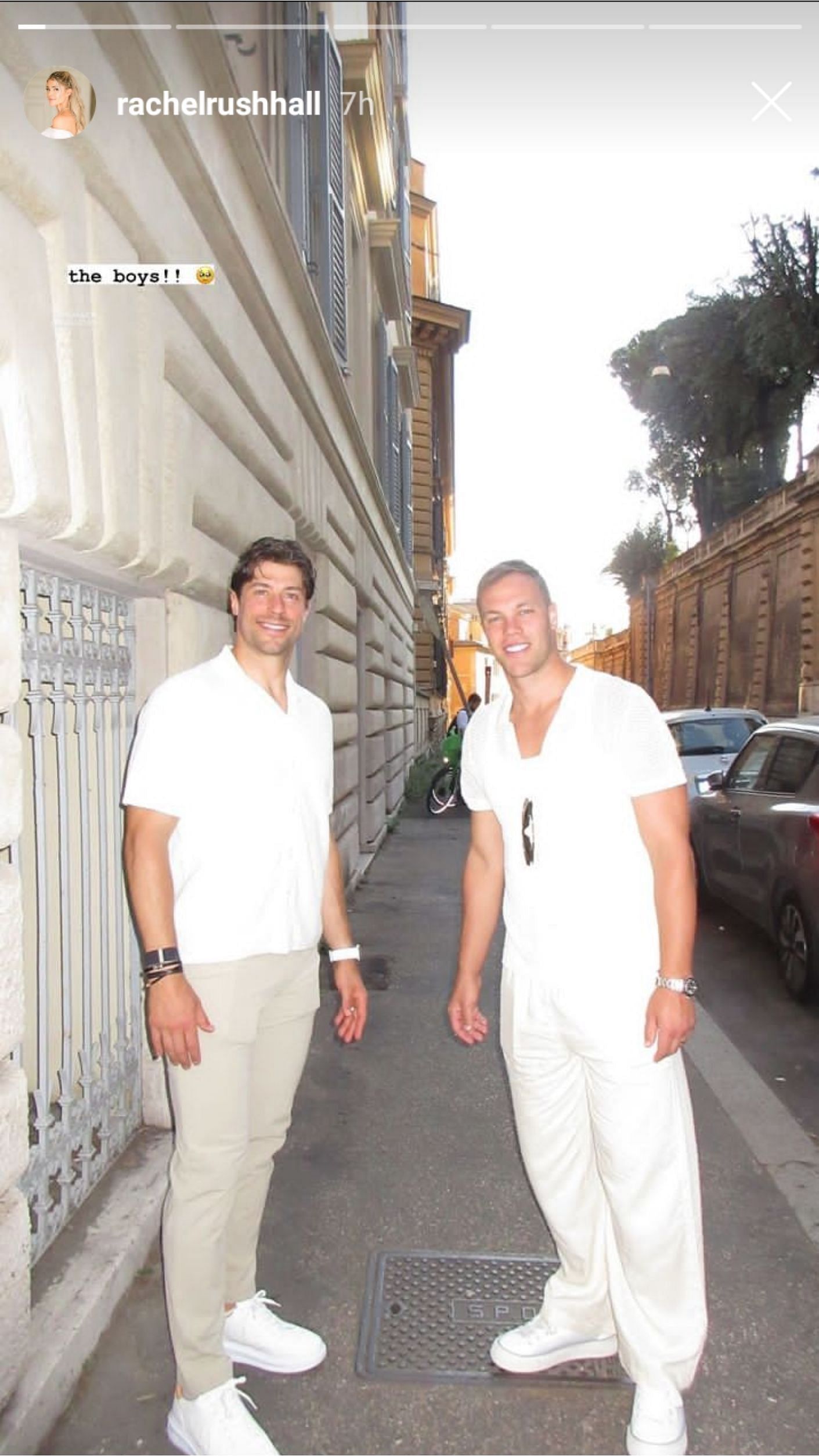 On her Instagram story, Rachel Hall shared two pictures of Craig Smith and Taylor Hall standing on a narrow Italian street with a classic European vibe. She captioned the post: