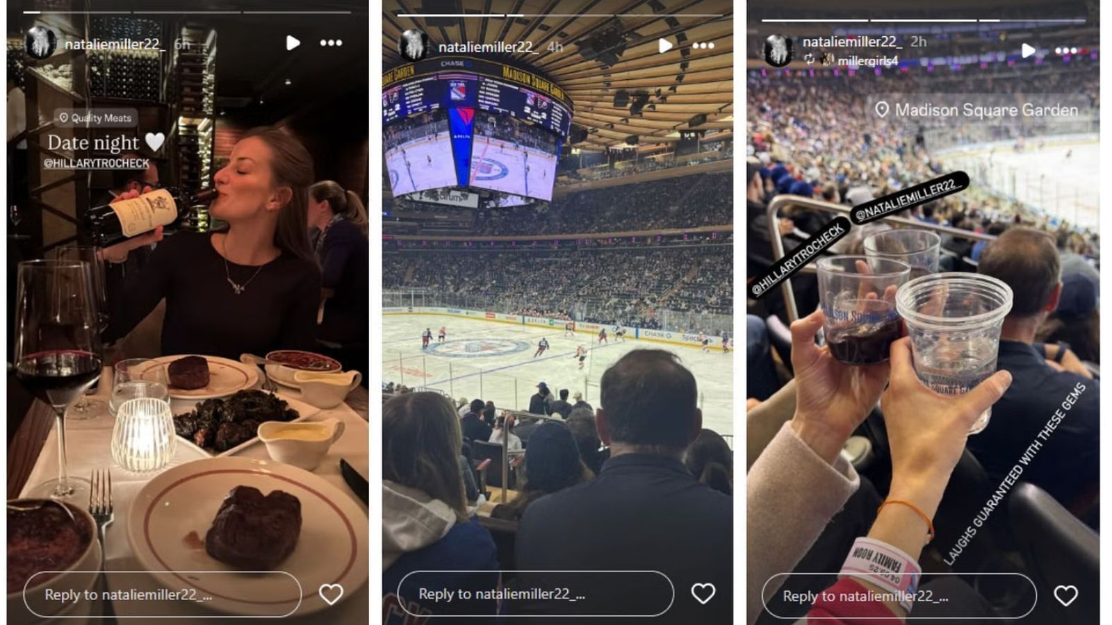 J.T. Miller and teammate Vincent Trocheck’s families are close. Earlier this month, Natalie Miller linked up with Trocheck’s wife, Hillary, on a girls’ night out. They had dinner at Quality Meats and later watched the Rangers play the Philadelphia Flyers at Madison Square Garden.