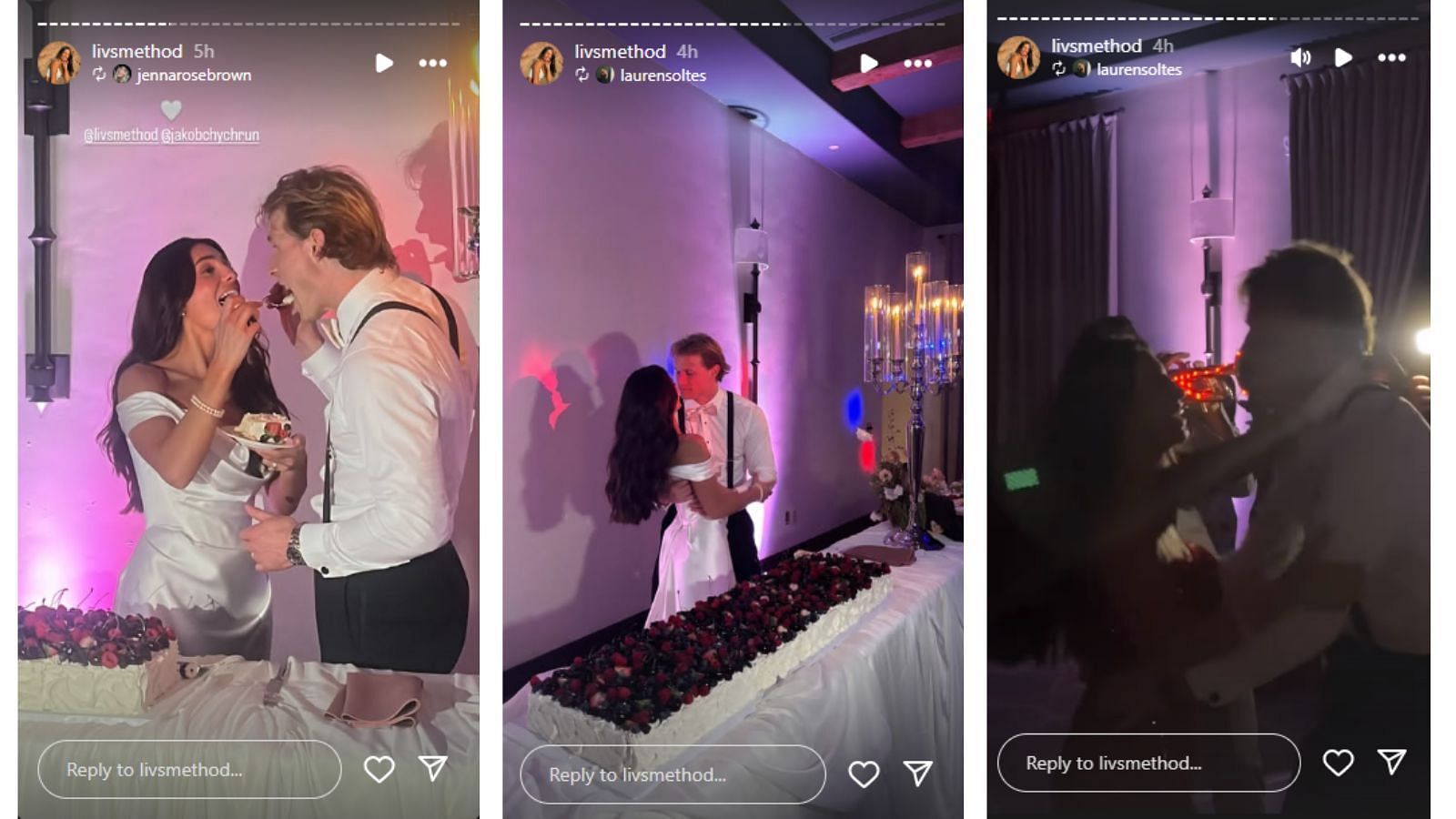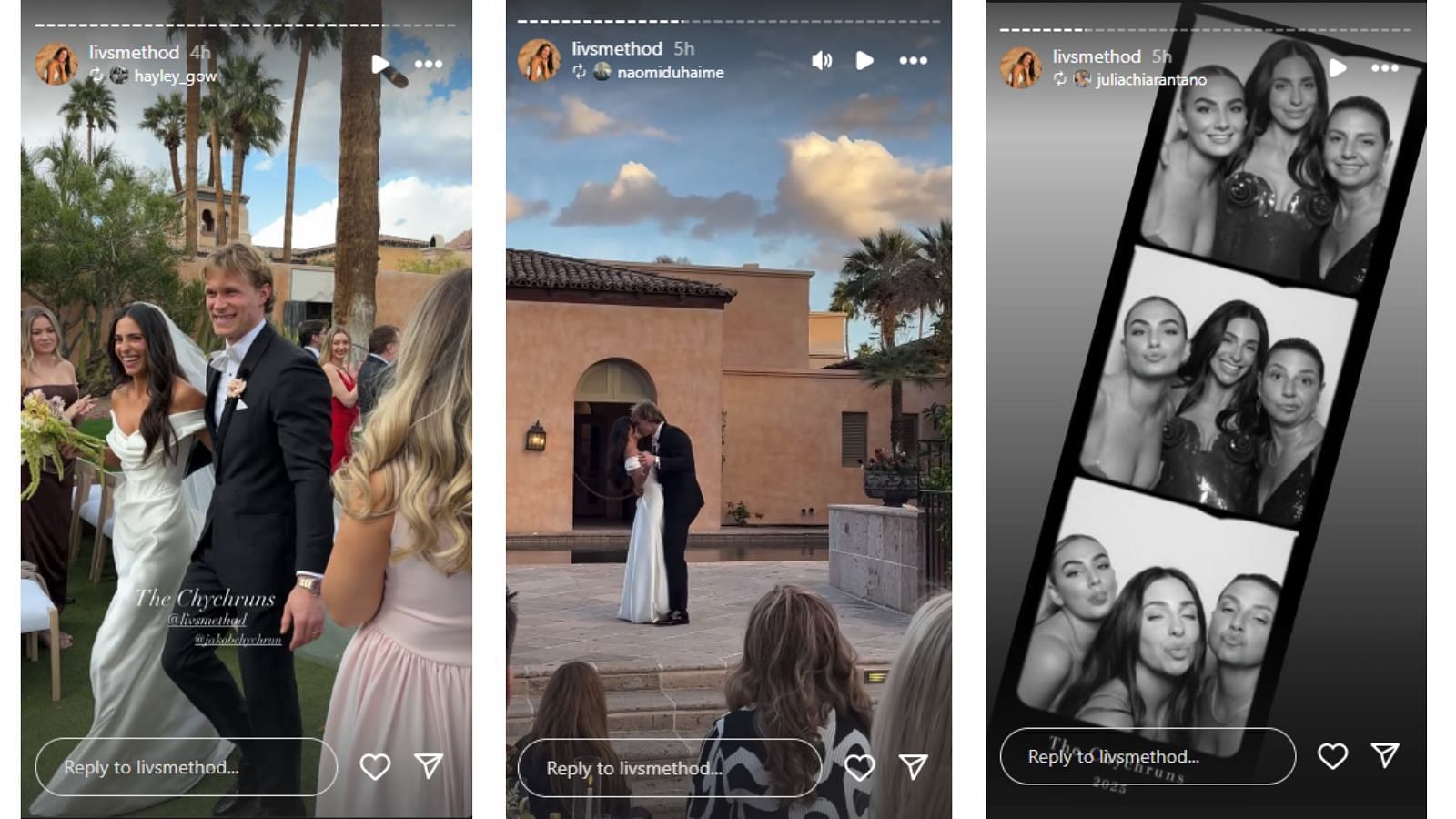 Another story featured a moment from the wedding ceremony, with Olivia and Jakob standing at the altar. Olivia wore an elegant off-the-shoulder white gown with a long train and a sheer veil.