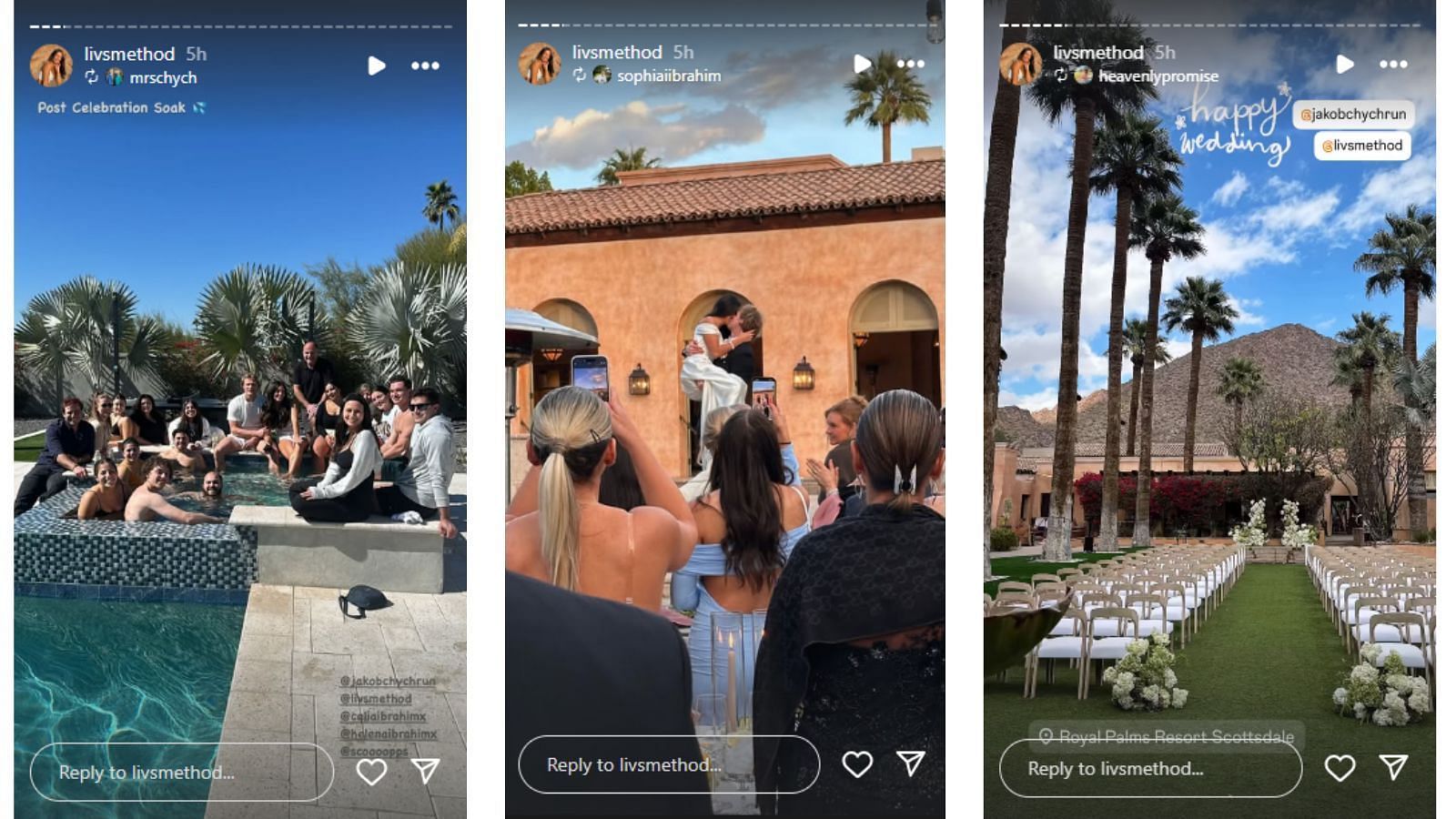 In another story, Jakob Chychrun and Olivia were seen gathered around a pool with their friends, some sitting on the edge while others were in the water. The caption mentioned a “post-celebration soak” after the wedding festivities.