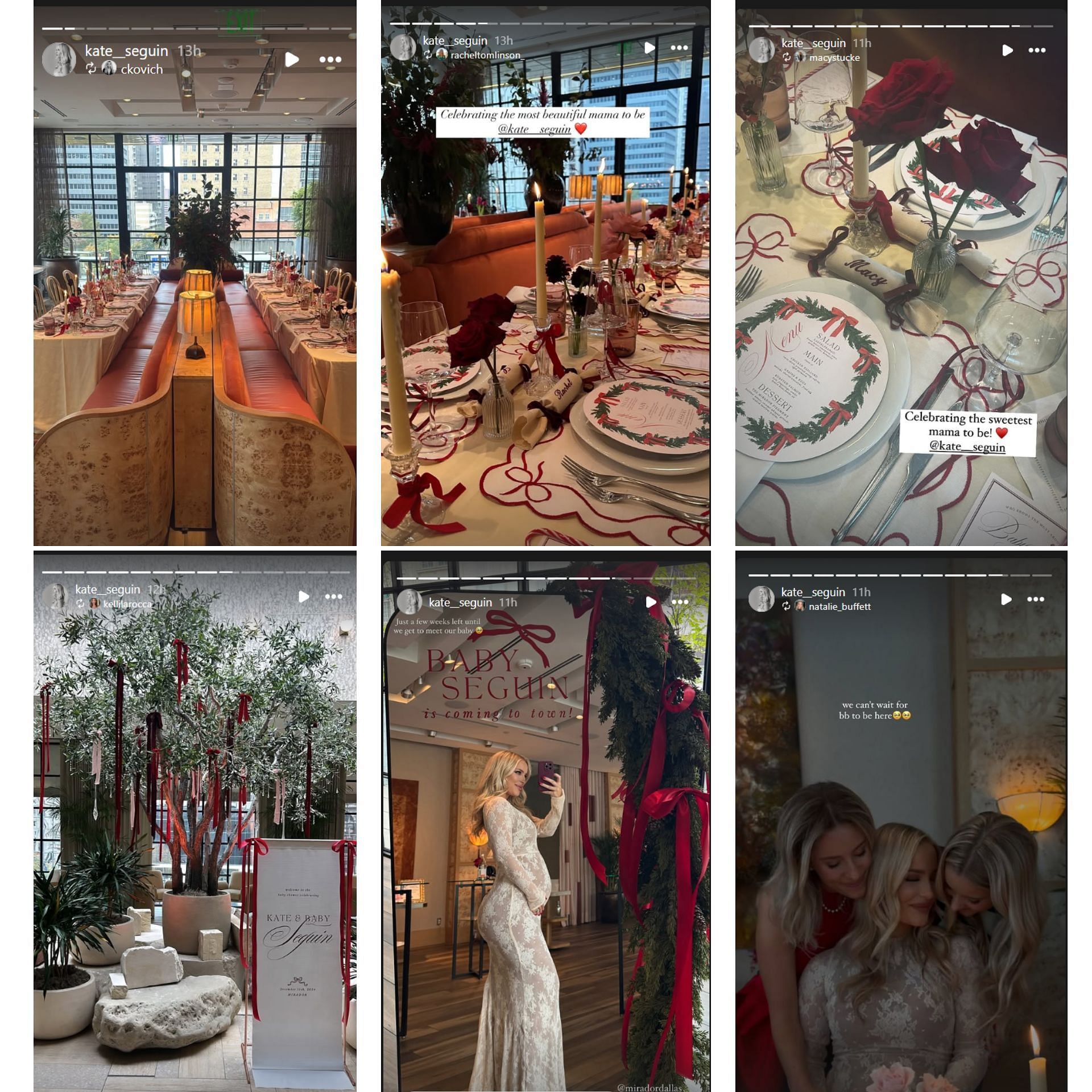 Dallas Stars forward Tyler Seguin is recovering from a hip injury, but he and his wife, Kate Seguin, have much to celebrate. Kate recently shared photos on her Instagram story from her Christmas-themed baby shower, giving a glimpse of the festive event.
