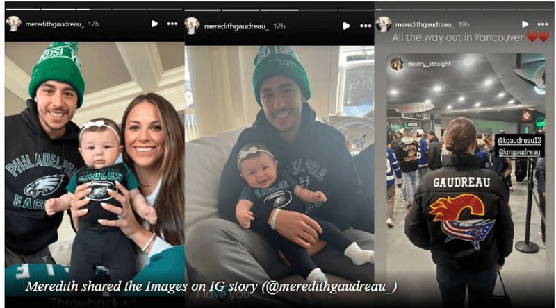 Johnny Gaudreau's widow, Meredith Gaudreau, also shared pictures that showed his love for the Philadelphia Eagles. Meredith posted several snaps on her Instagram Story where Johnny and Noa wore Eagles hoodies, T-shirts and beanies.