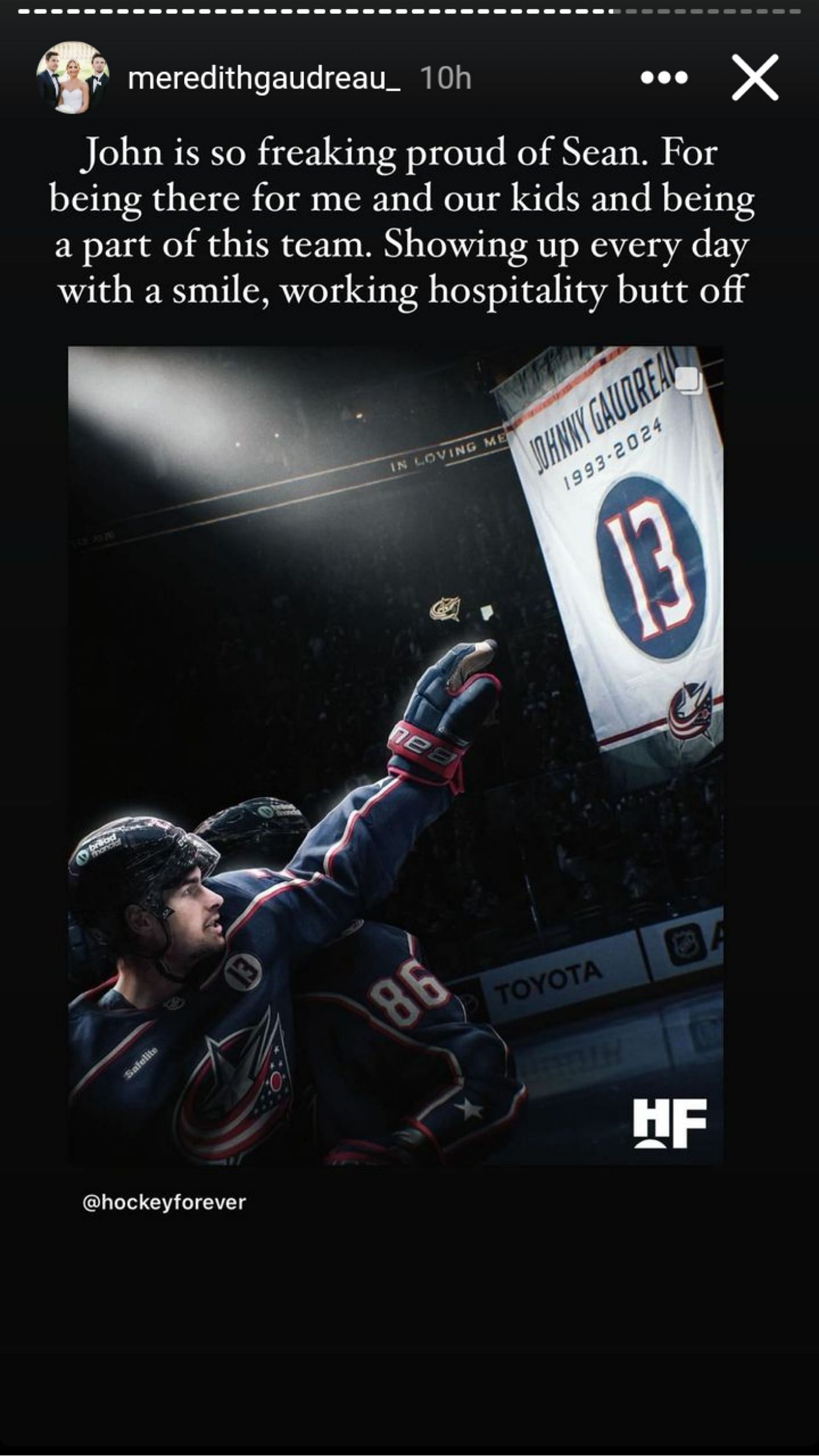 Monahan scored his first goal for the Blue Jackets on the special night and immediately dedicated it to Johnny. Meredith reposted it on her story and wrote in the caption,