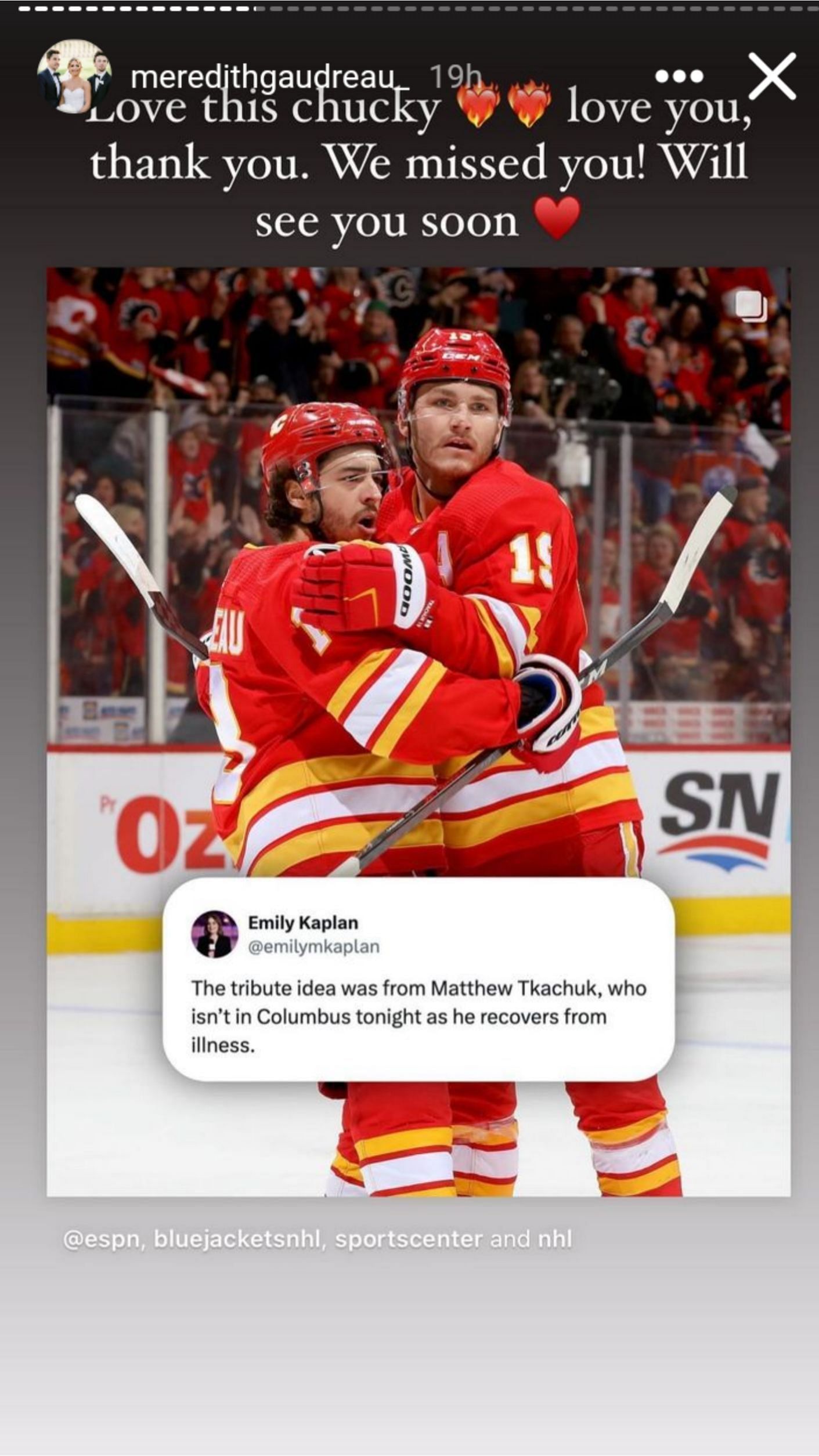 Meredith Gaudreau appreciated the gesture that Matthew arranged despite not being present on the ice.