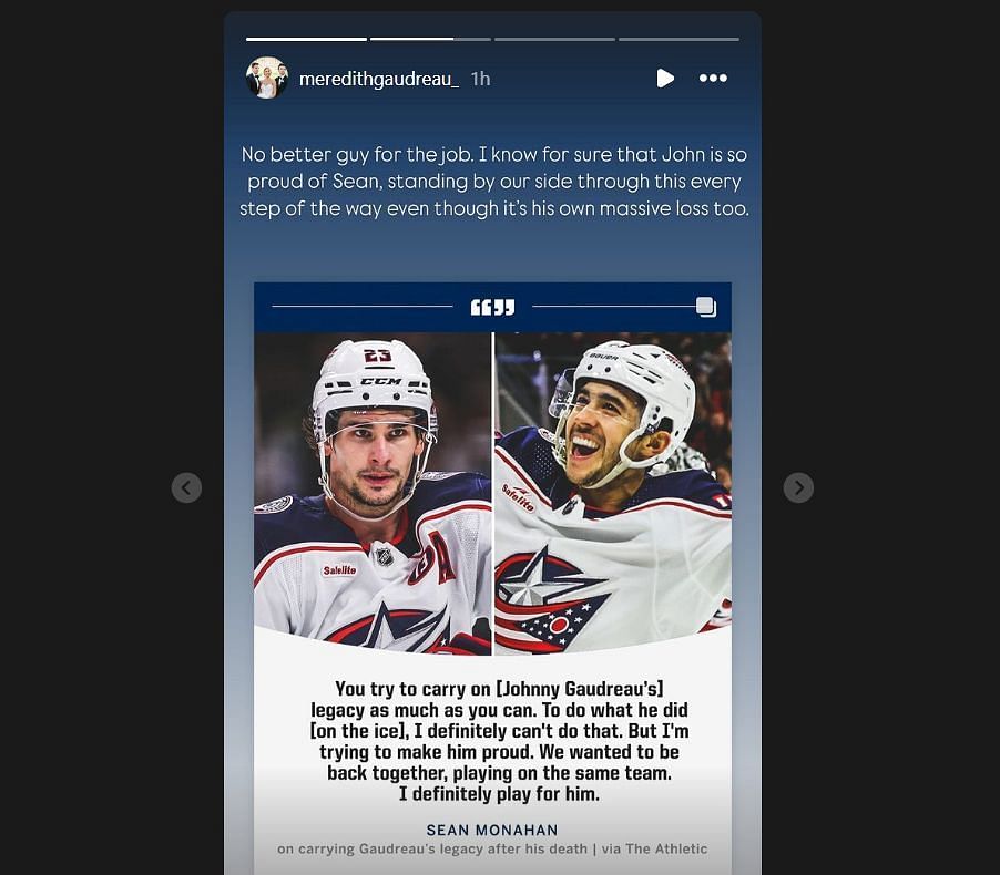 On Tuesday, the Calgary Flames and Columbus Blue Jackets fans united to honor Johnny Gaudreau at Scotiabank Saddledome. After the game, Johnny’s wife, Meredith, shared a heartfelt Instagram post about Blue Jackets star Sean Monahan.