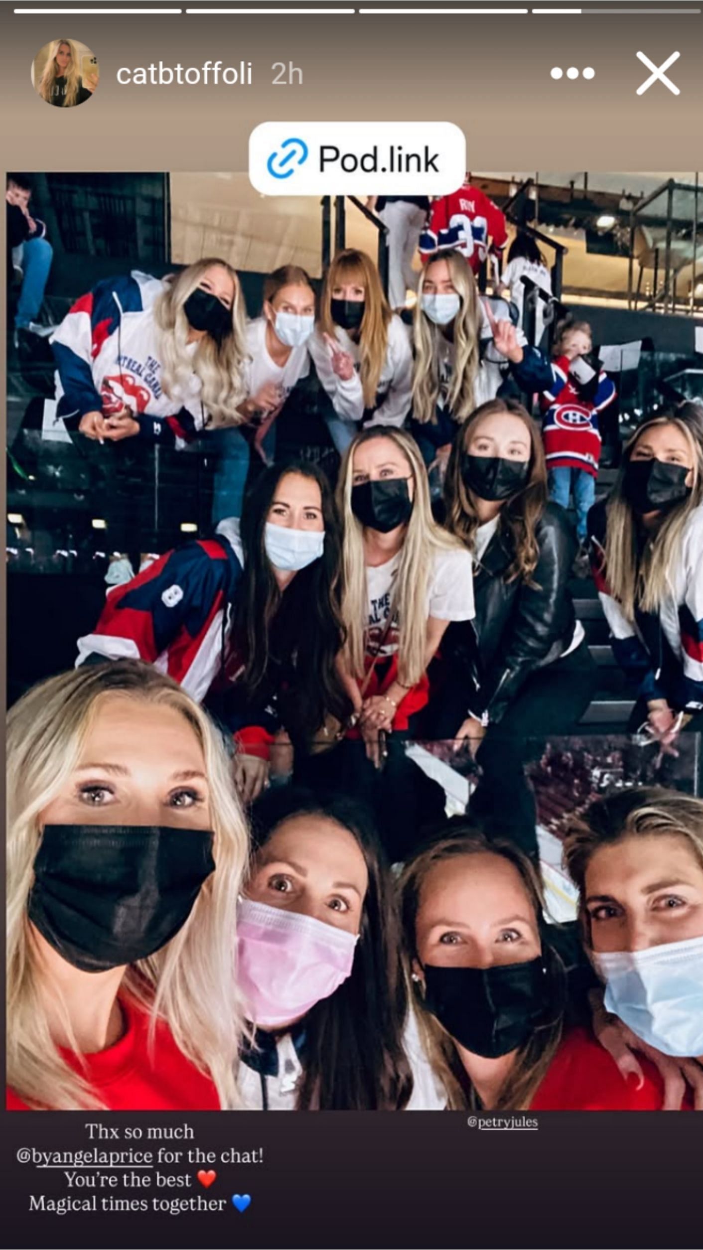 Cat Toffoli posted a photo of the group from the arena and called out Carey Price's wife for dropping by for a chat with them.