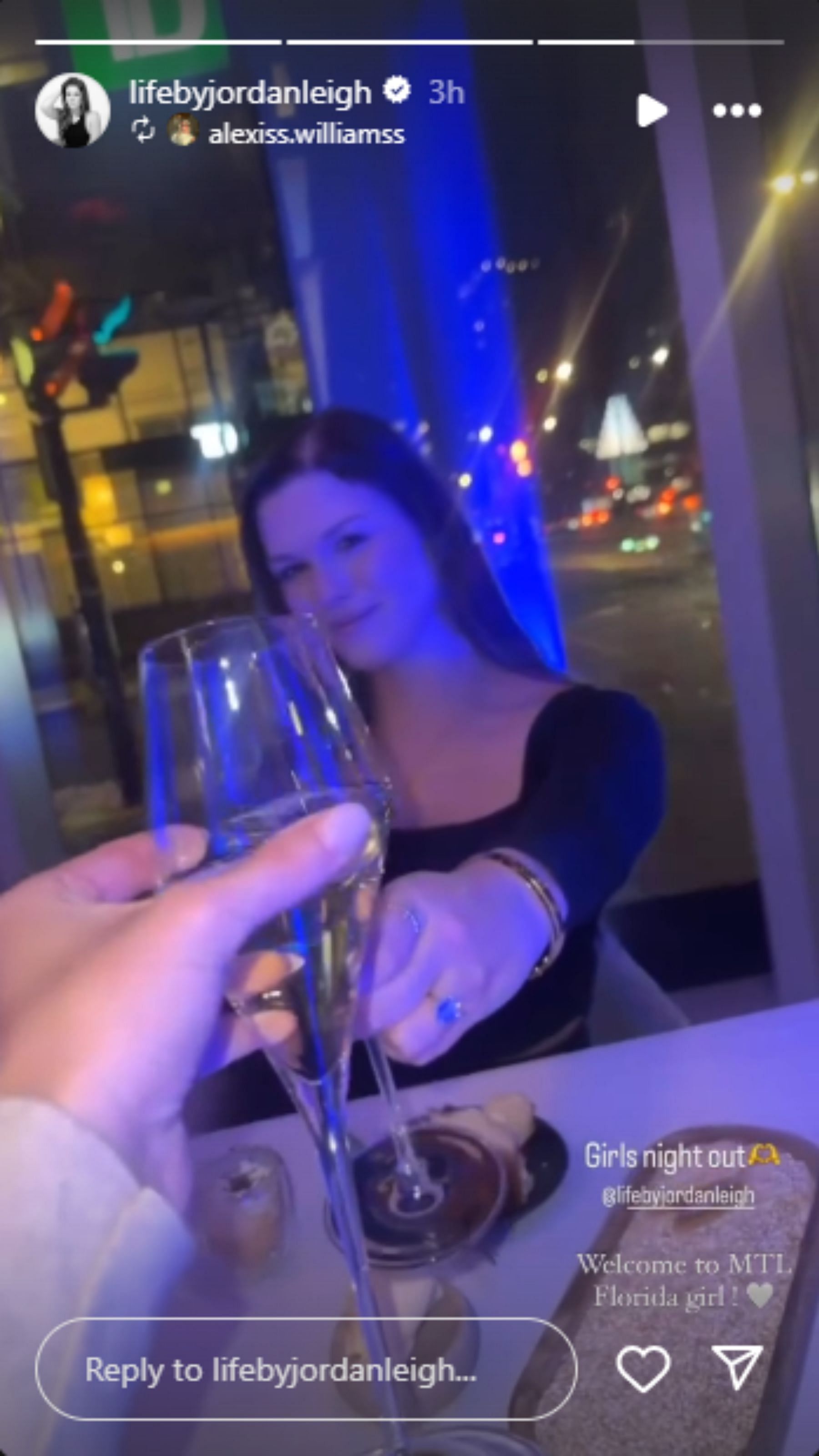 “Girls night out @lifebyjordanleigh Welcome to MTL Florida girl 🤍”, Williams wrote in the caption of her story.