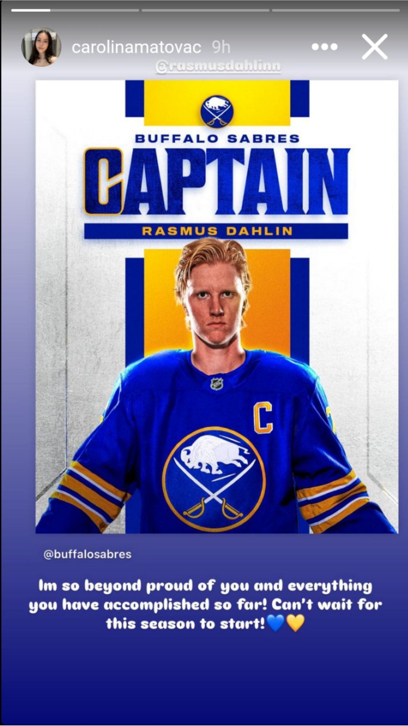 The Buffalo Sabres have named Rasmus Dahlin as their new captain ahead of the 2024-25 NHL season. Dahlin's partner Carolina Matovac was overjoyed with the news and expressed her excitement on her Instagram story with a heartfelt message.