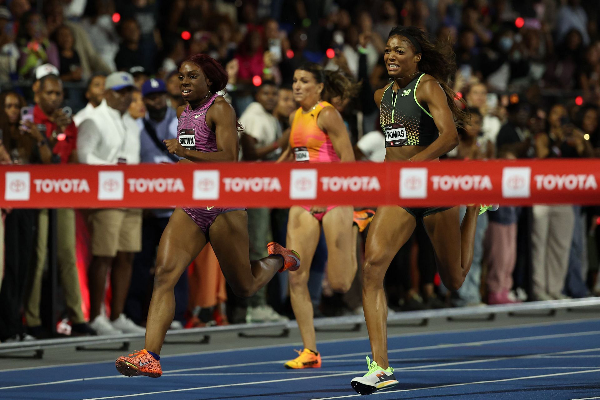 USA's Brittany Brown stunned Gabby Thomas in her first race after the Paris Olympics in the 200m. Brown clocked 22.18s to defeat Gabby Thomas who finished second with a performance of 22.21s. Brown also won the silver medal in the 100m finishing behind Marie-Josee Ta Lou-Smith and took home a prize purse of $85,000 making her the highest-paid athlete of the track meet.