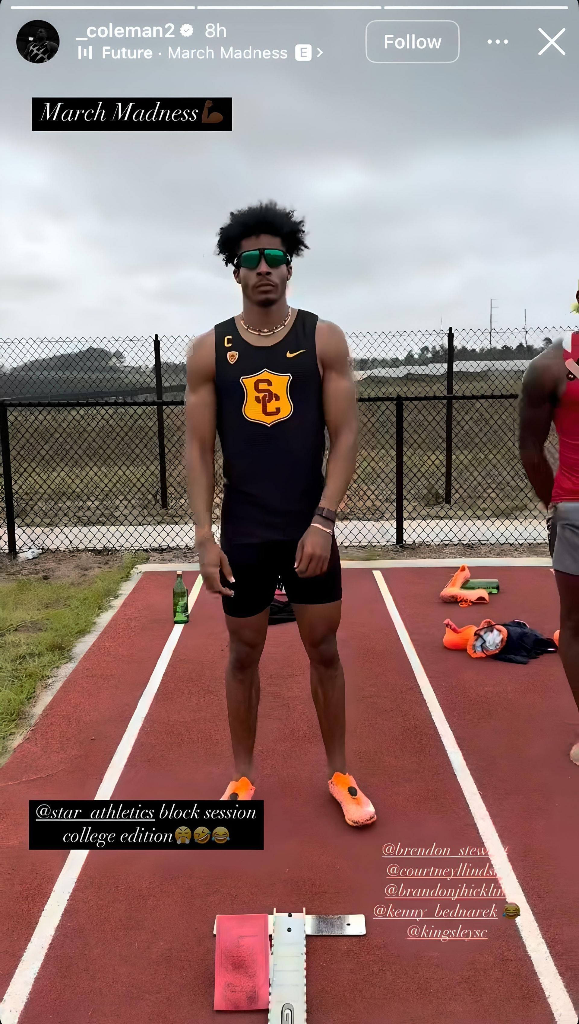 Christian Coleman shared a look at his latest training session on social media. The video featured various athletes such as Brendon Stewart, Courtney Lindsey, Brandon Hicklin, and Aaron Kingsley Brown donning March Madness outfits.