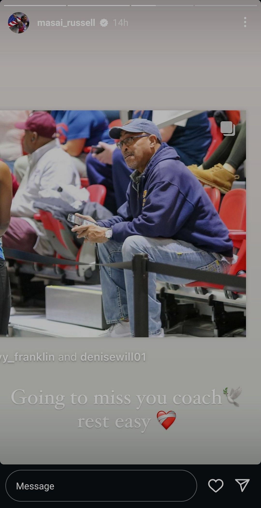 Russell took to her official Instagram handle to share a story reacting to the death of her former coach. She shared an image of Clarence Franklin and wrote: