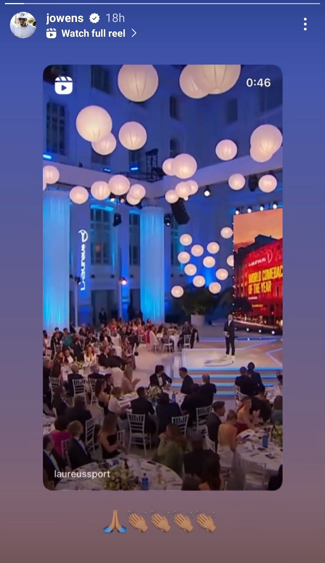 Owens, being a lifelong supporter of Biles, appreciated this achievement. The Chicago Bears player shared a reel dedicated to Biles by the Laureus' official Instagram page on his story with several emojis as the caption.