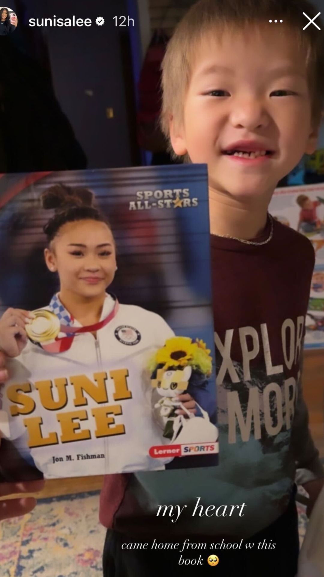 “Came home from school w this book,” Suni Lee wrote.