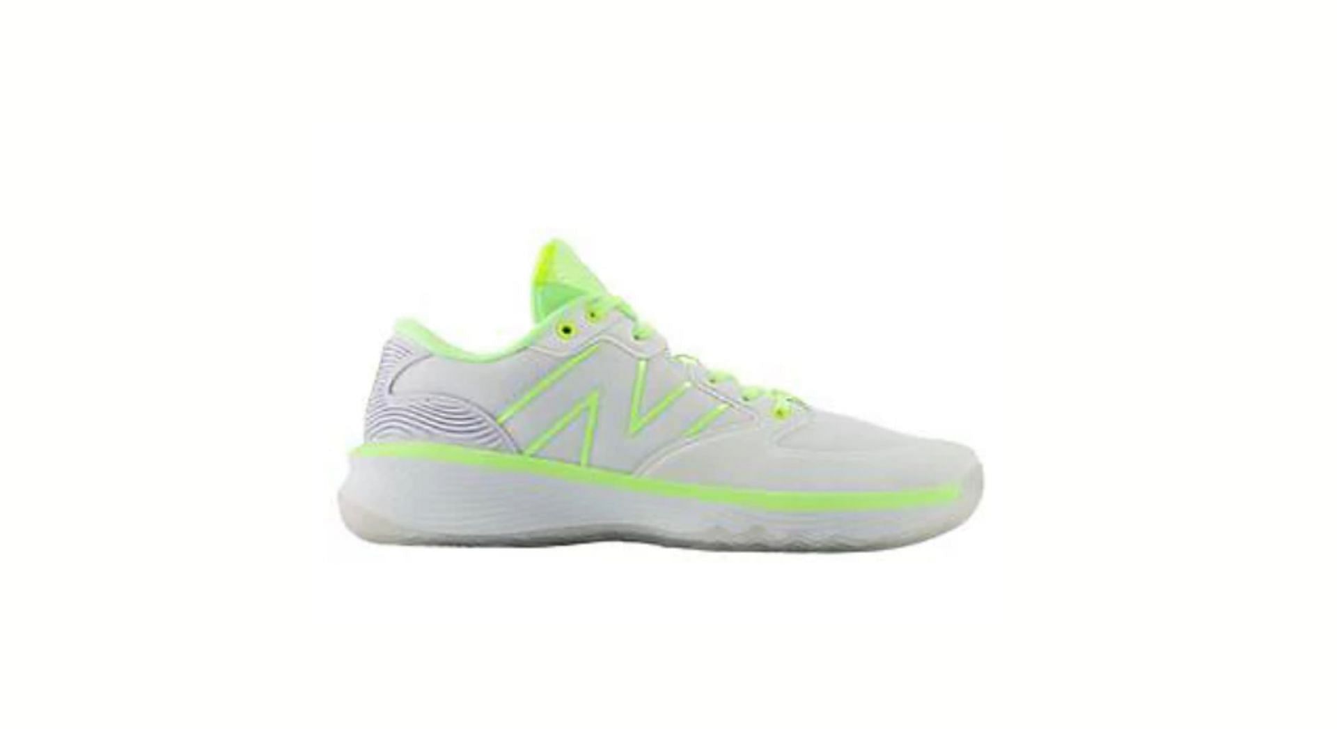 The New Balance Hesi Low 'Shine' kicks arrive in a dichromatic design, featuring an upper primarily dressed in a white hue, with contrasting green accents on the tongue, laces, tongue, midsole, and collar of the sneakers. As the brand states, this model features a Fuelcell technology that provides propulsion, while the ABZORB technology offers cushioning to the feet.