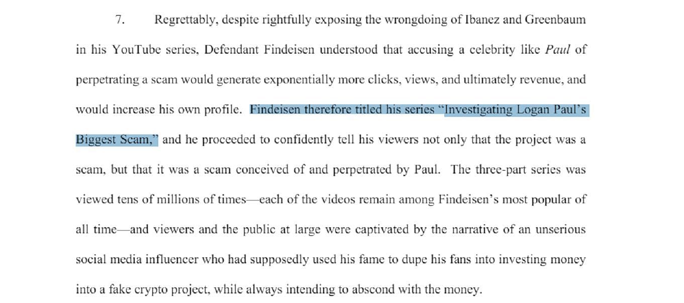 "Defendant Findeisen understood that accusing a celebrity like Paul of perpetrating a scam would generate exponentially more clicks, views, and ultimately revenue, and would increase his own profile."