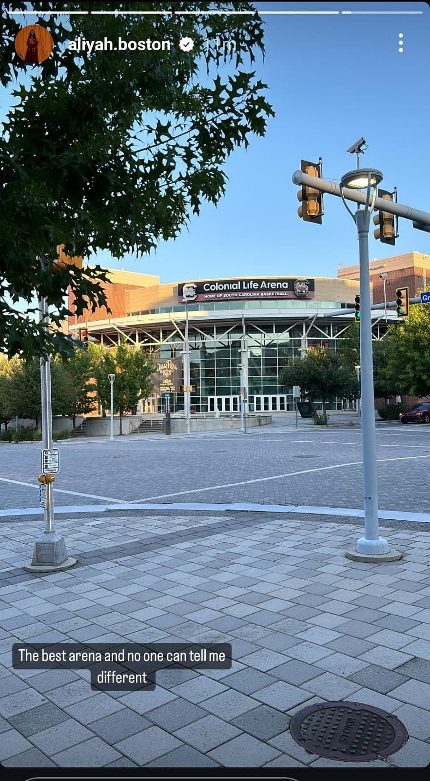 Early Monday morning, she shared an Instagram story featuring the Colonial Life Arena, where South Carolina basketball plays its home games.