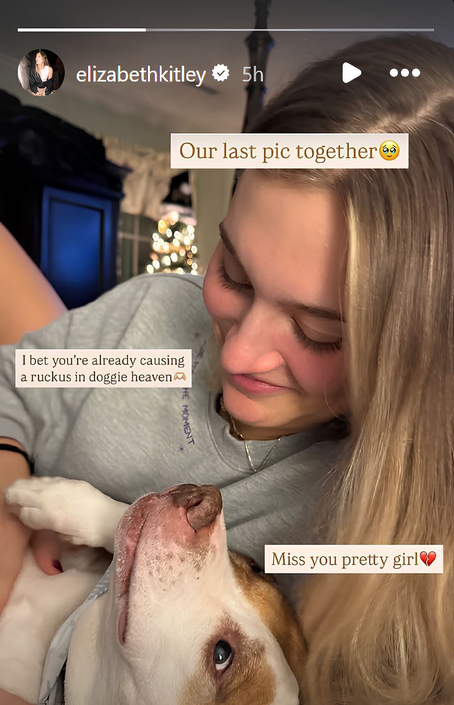 "I bet you're already causing a ruckus in doggie heaven. Miss you pretty girl" posted Kitley as she shared what was her last picture together with her pet, on Instagram.