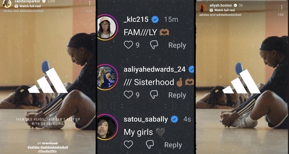 Each player featured in the ad shared it on their Instagram story. Parker, President of Adidas Women's Basketball, captioned the video with "three stripes" and the word "sisterhood."
