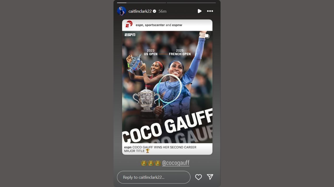 Caitlin Clark shouted out Tennis star Coco Gauff after she secured her second major career title. On Saturday, the Indiana Fever star shared ESPN's Instagram post congratulating Gauff for winning the French Open.