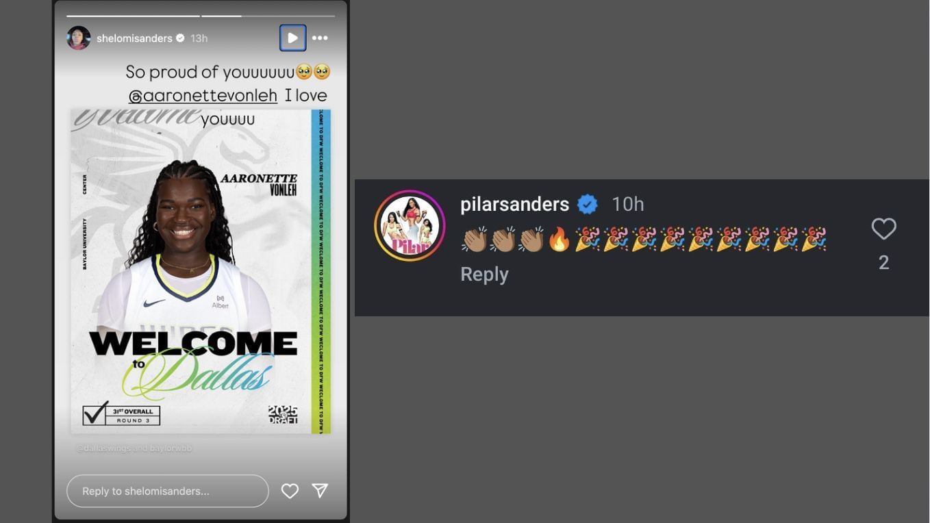 Pilar left a string of congratulatory emojis to celebrate Vonleh joining the WNBA world as a member of the Dallas Wings.