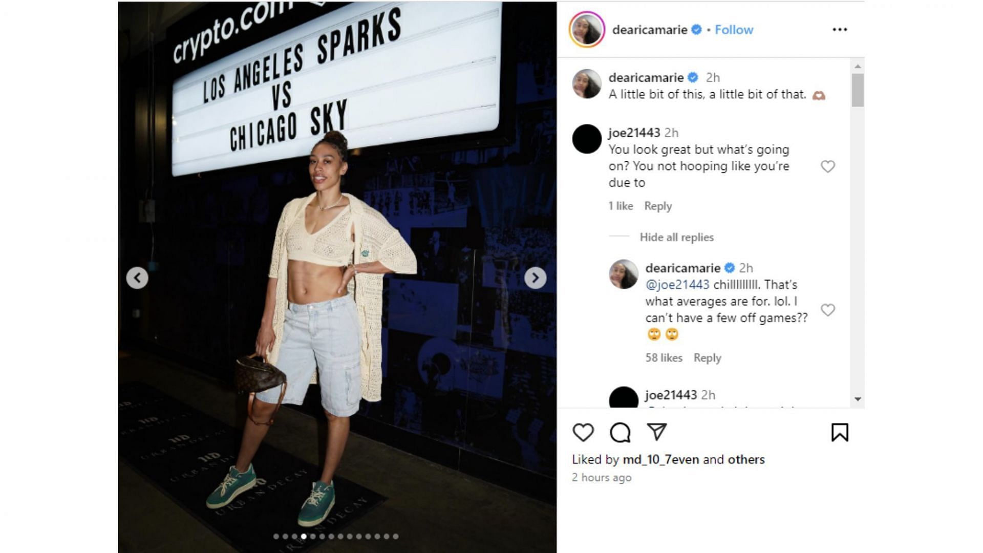 LA Sparks forward Dearica Hamby had a straightforward response to a fan who criticized her recent performance, explaining that it's normal for players to have off nights.