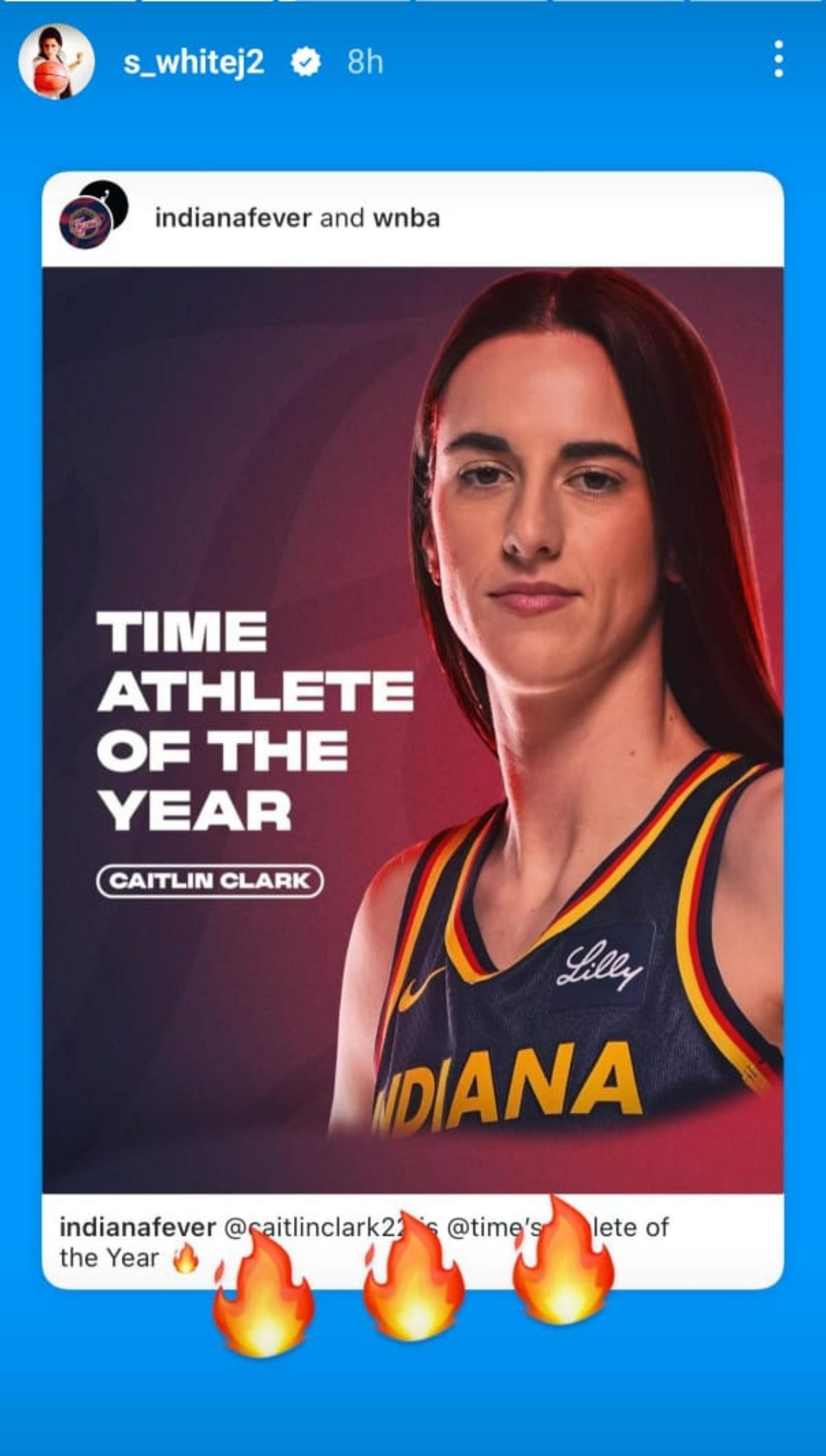 White is seemingly invested in her new chapter and her social media activity confirms that she's trying to create meaningful relationships with her players. On Wednesday, she celebrated Clark being named the TIME Athlete of the Year with three fire emojis.