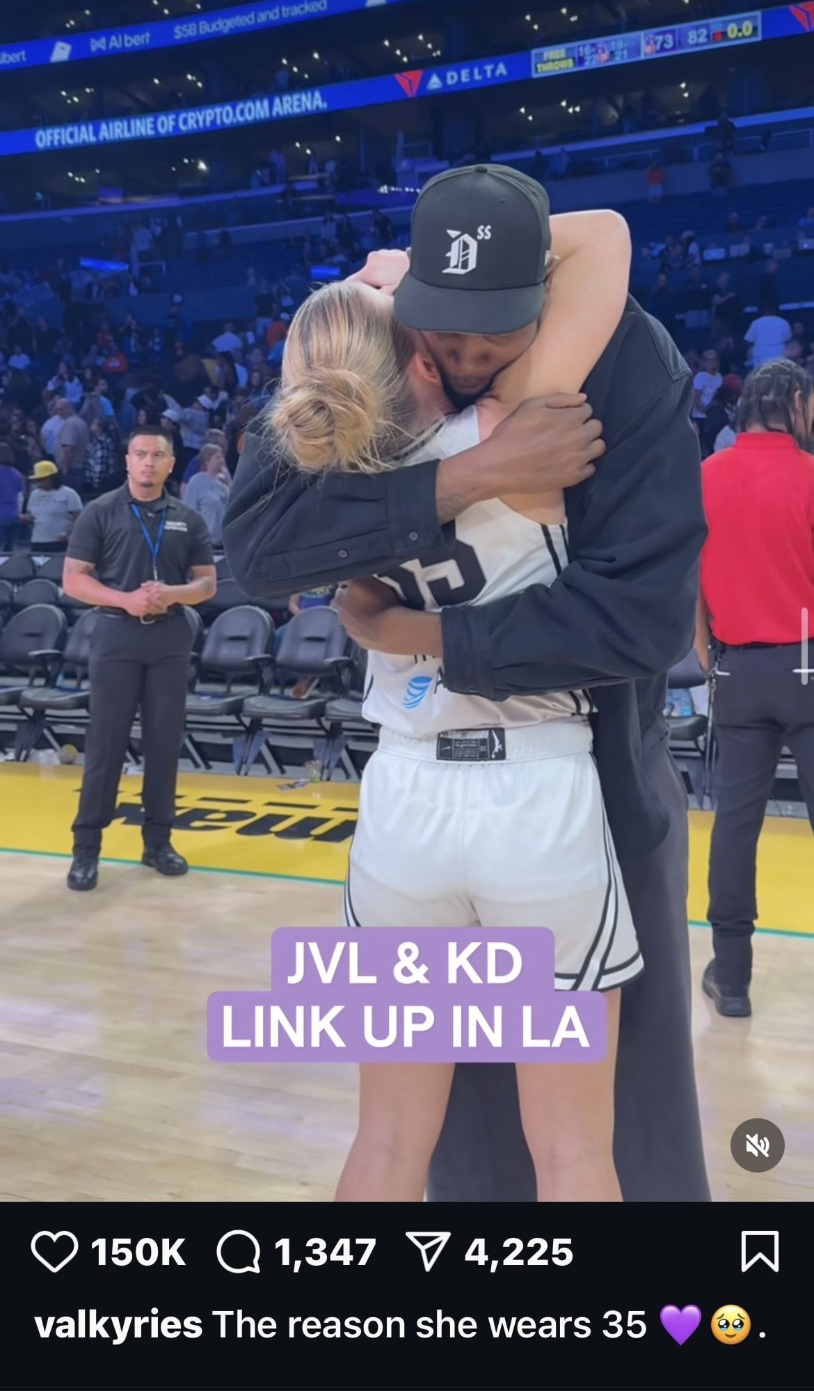 "The reason she wears 35. @julie35vanloo and @easymoneysniper share a moment after the Valks Win LA," the post said.