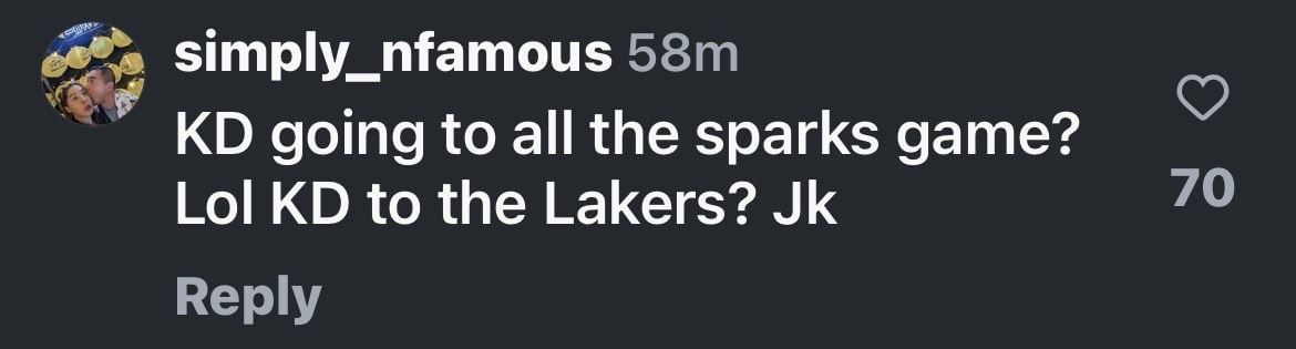 "KD going to all the Sparks games? lol KD to the Lakers? Jk," one fan wrote.