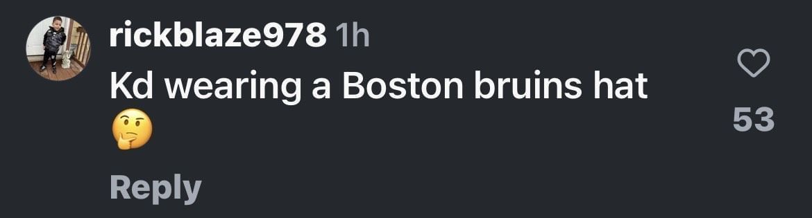 "KD wearing a Boston Bruins hat," a fan commented with the thinking emoji.