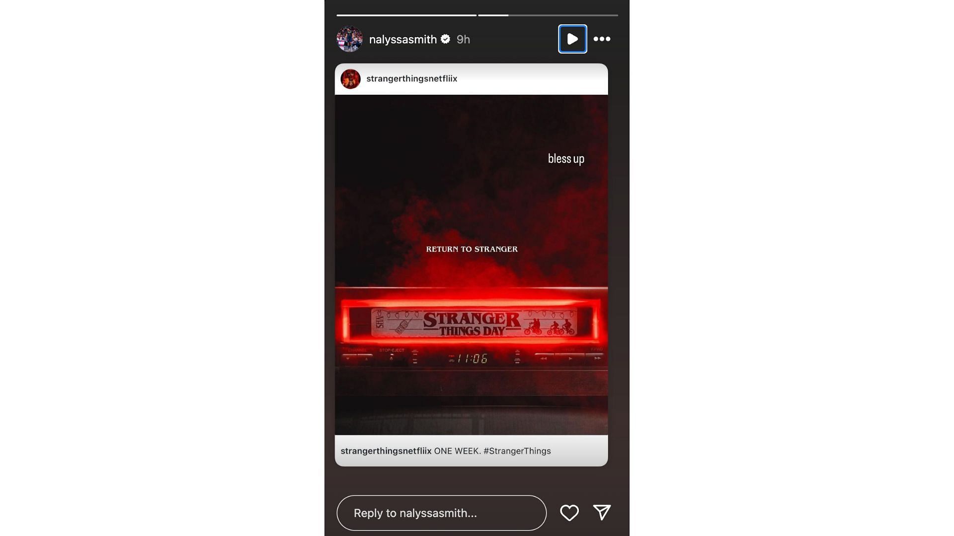 N. Smith shares a post about the Netflix show Stranger Things. Photo Credit: NaLyssa Smith's IG account